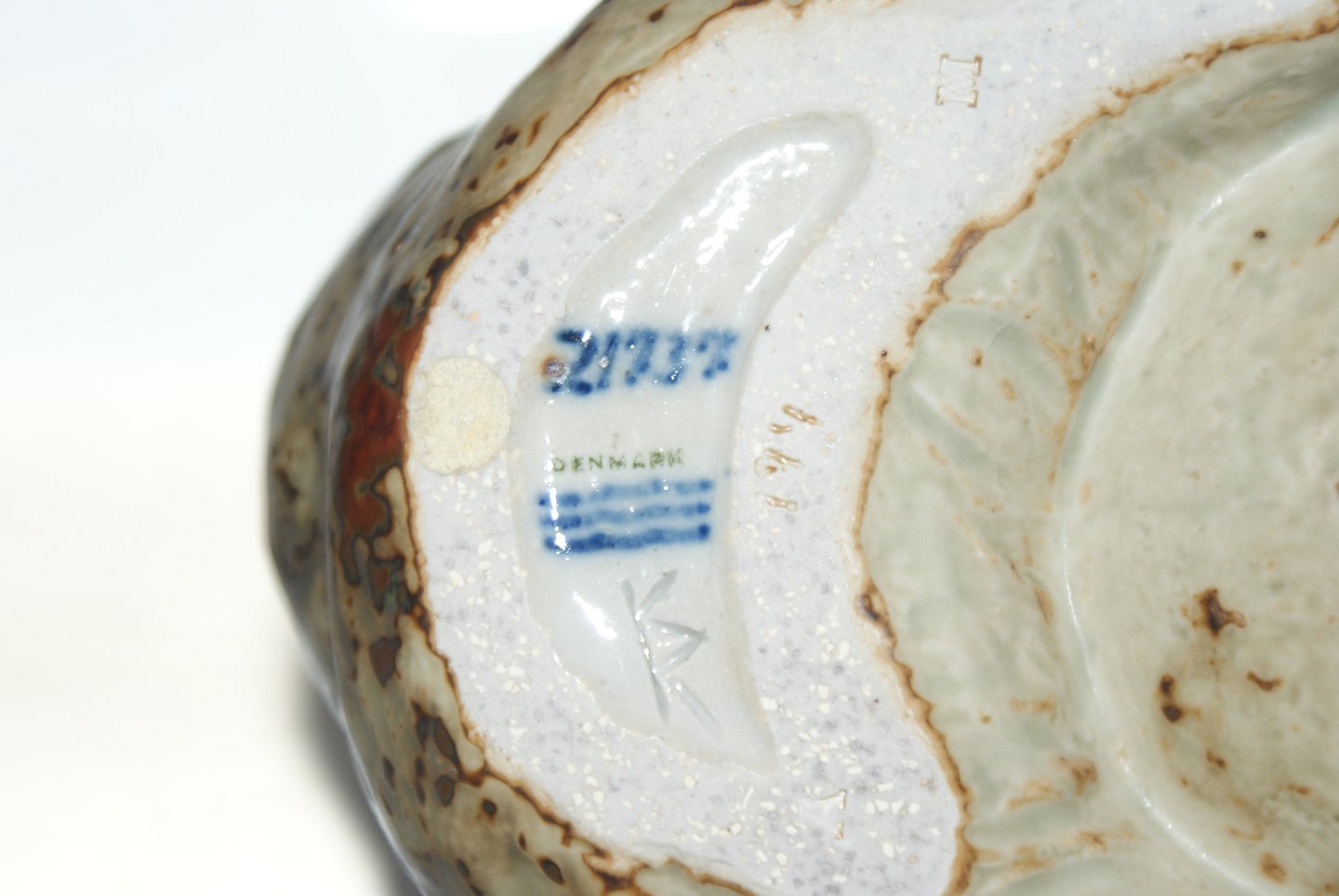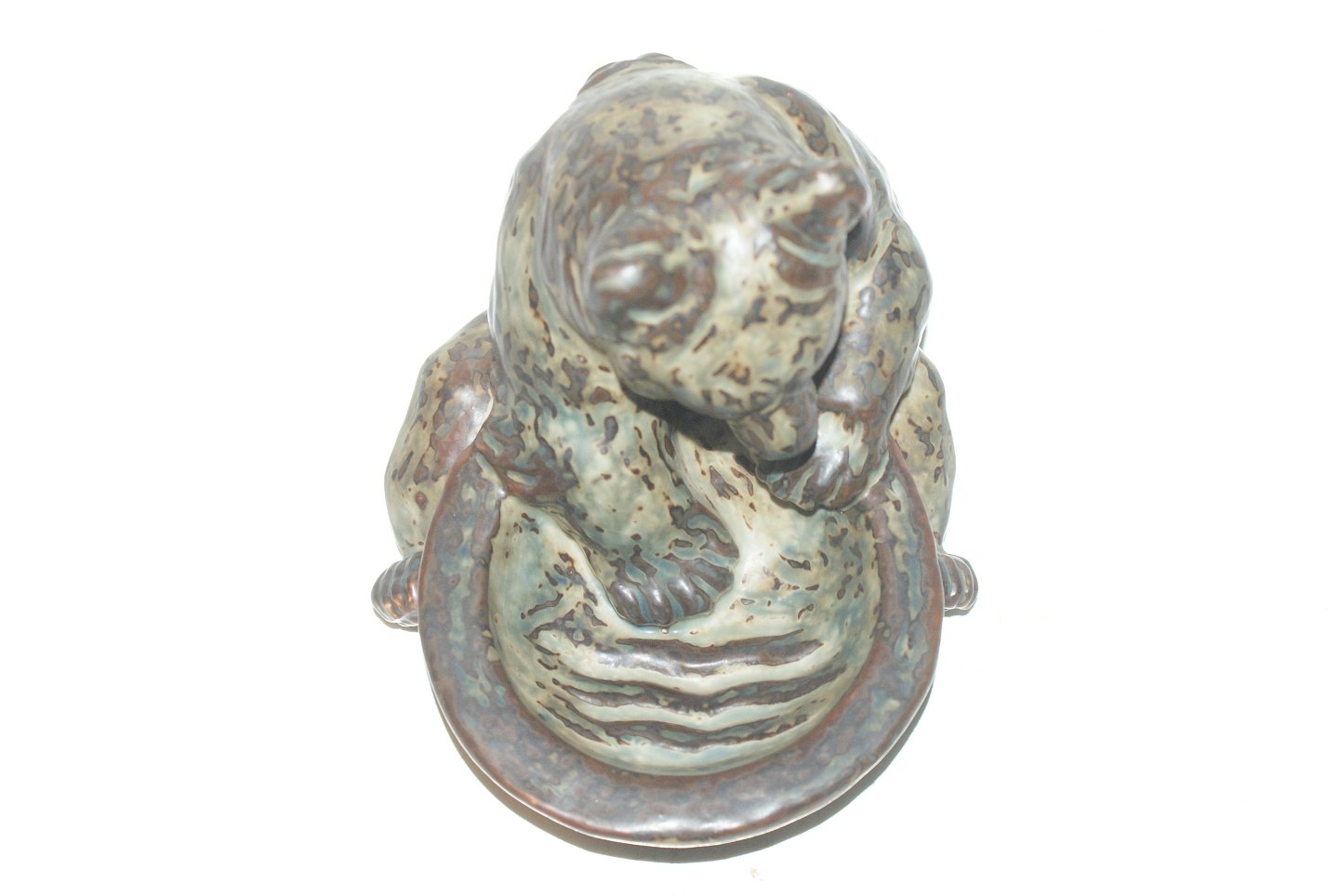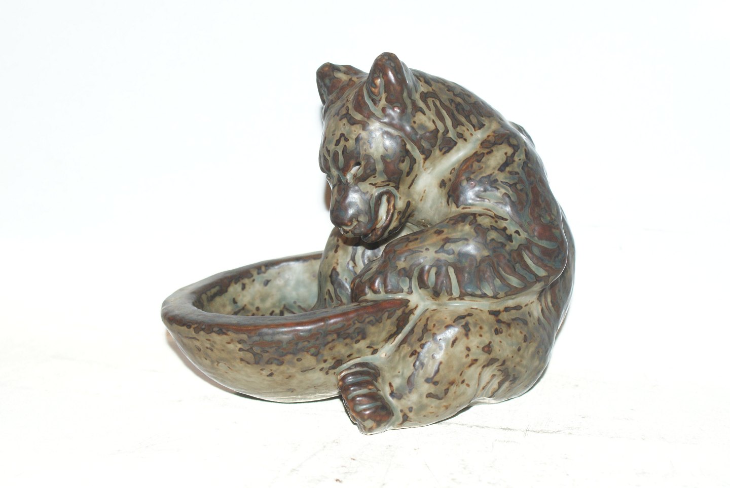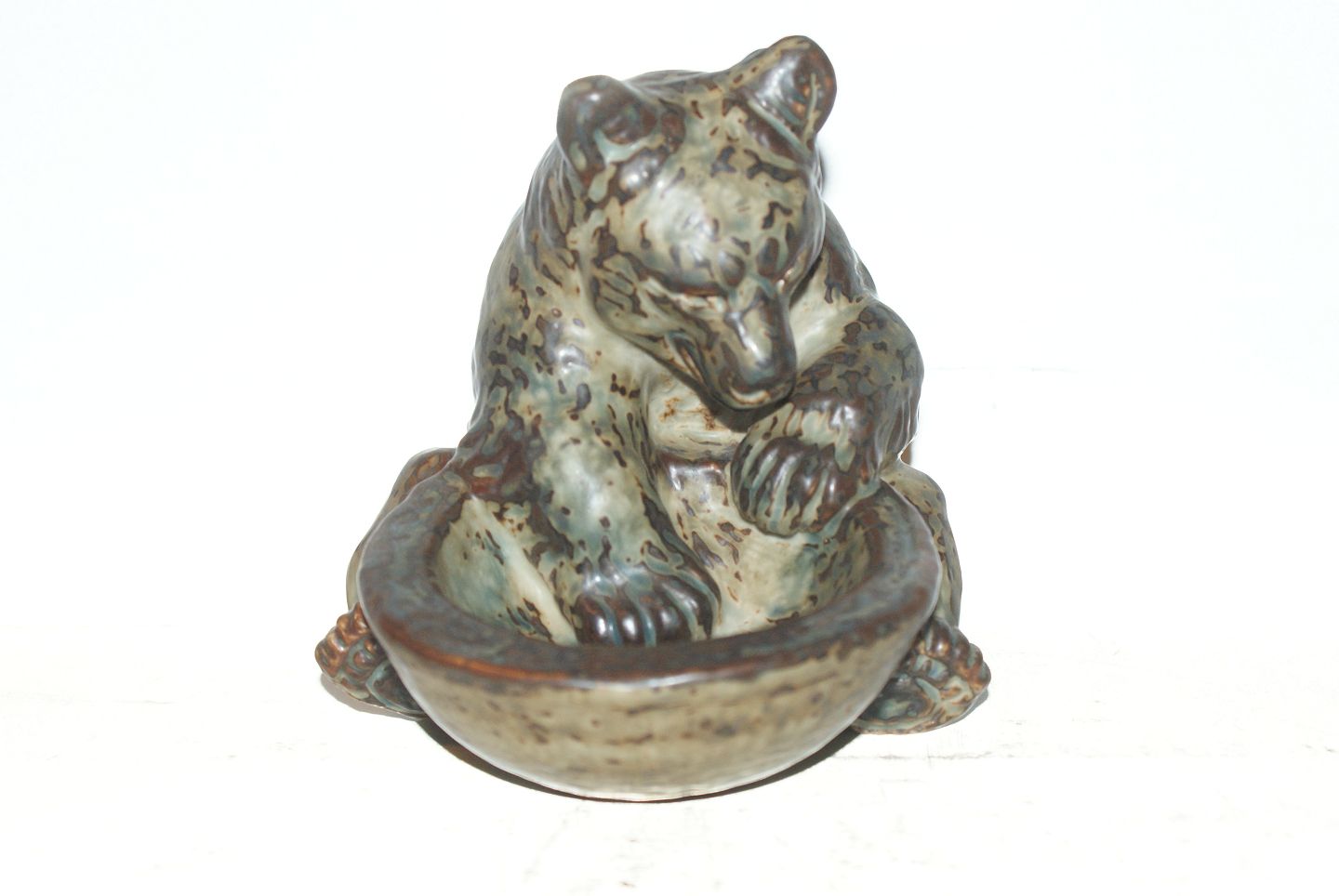Royal stoneware figure of bear with tub Designed by Knud Kyhn. Decoration Number 21737 Factory 1st quality. Height 14 cm. Perfect condition