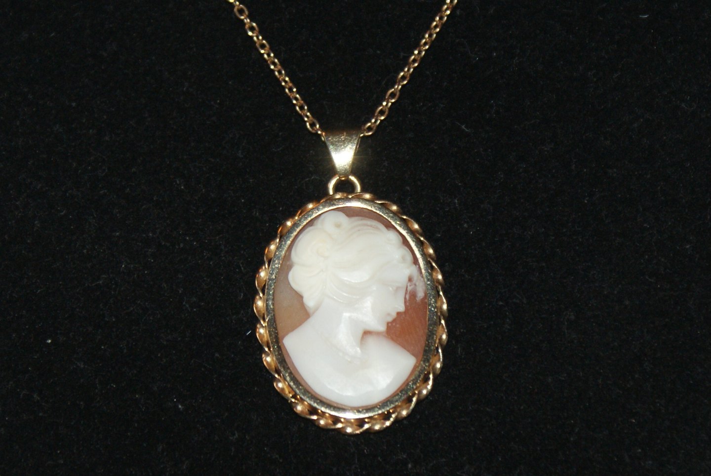 Anchor Necklace with Camé Pendant, 8 + 14 Carat Gold