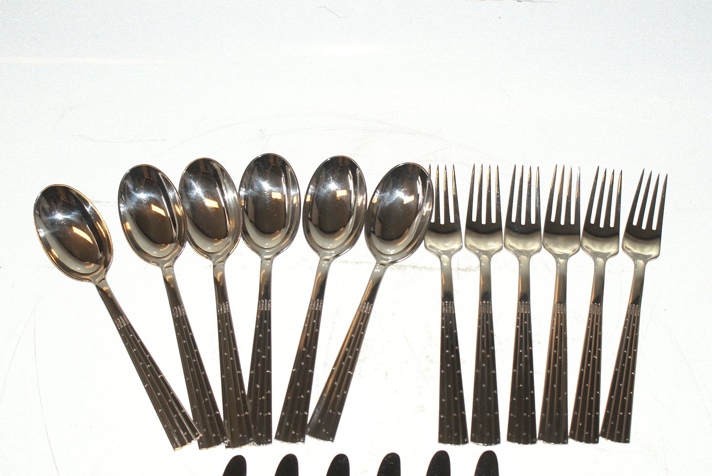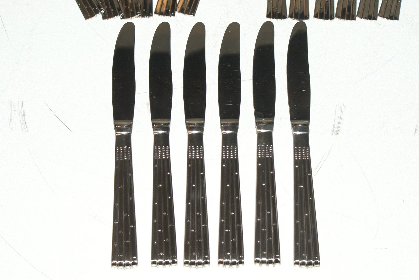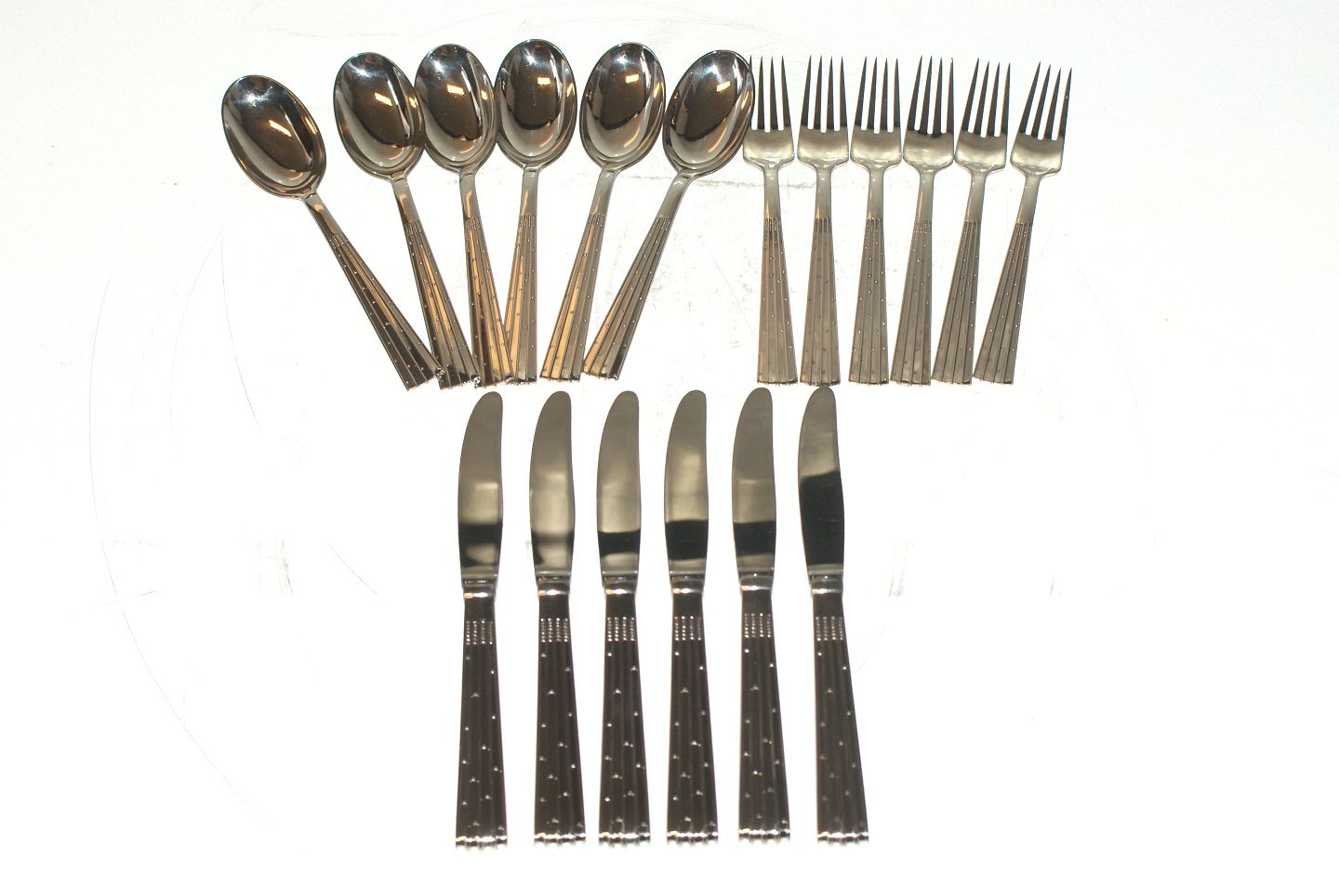 Champagne Lunch Flatware Set for 6 people Dessert spoon17.3 cm. Lunch fork 17 cm. Lunch knife 19 cm. Total 18 parts. Beautiful and well maintained.