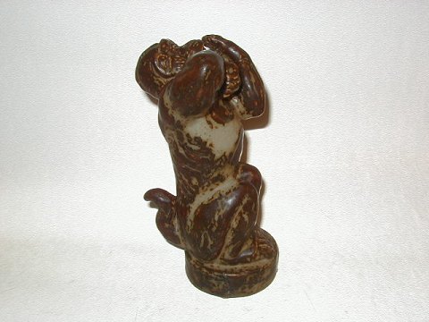 Meget Stor Kongelig Stentøjs Figur, Abe på sokkel designet og signeret af Knud Kyhn. Dek. nr. 21632. 1. sortering. Højde 27 cm.