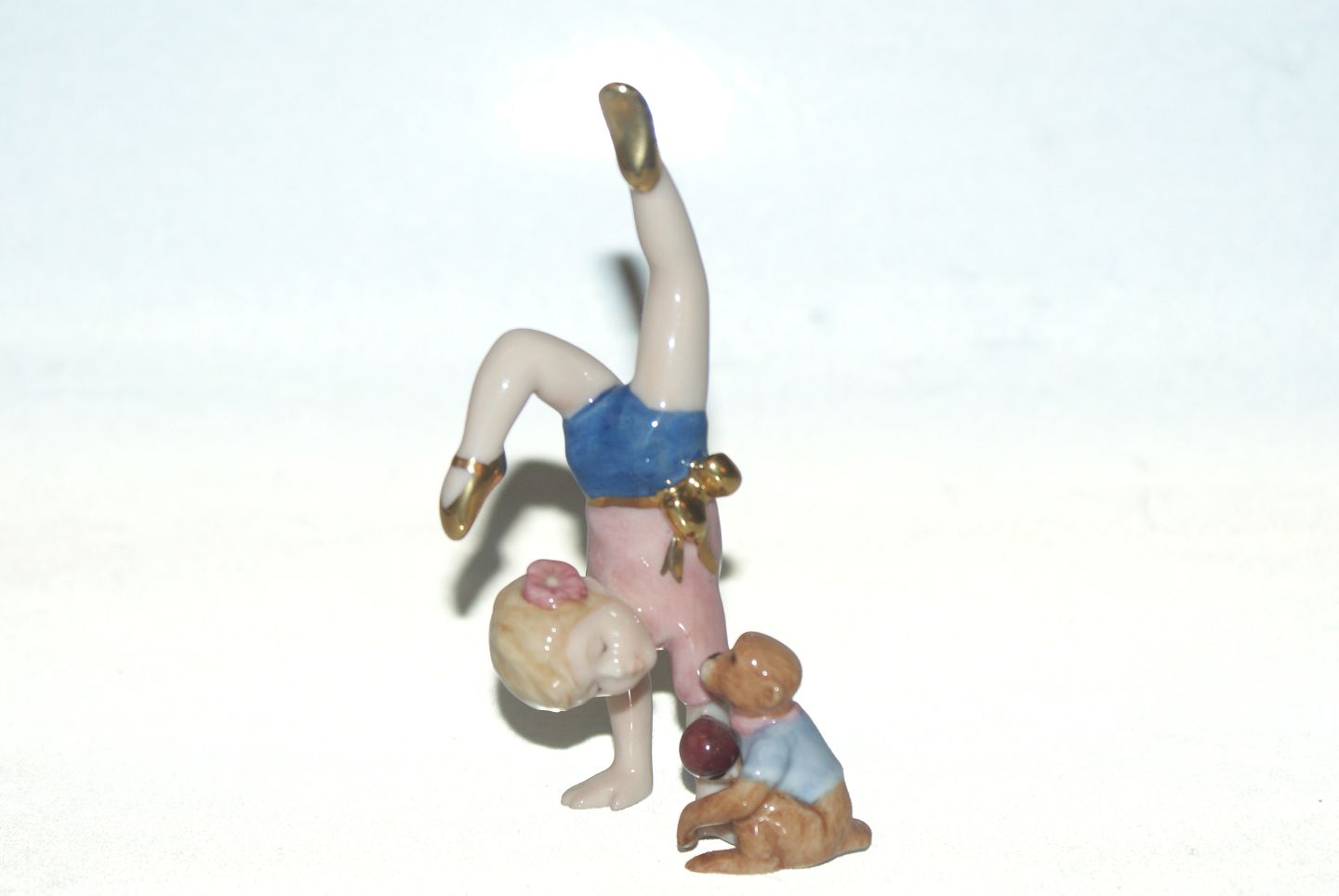 Royal Copenhagen mini collection pige står på hænder med abe Dek nr 201 Højde 11 cm Pæn og velholdt stand https://www.antik-huset.dk/royal-copenhagen-mini-collection-pige-star-pa-haender-med-abe.html