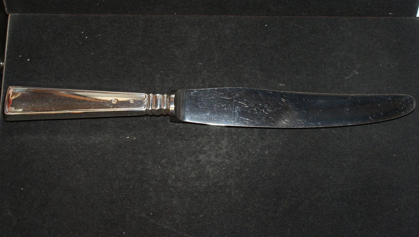 Middagskniv Reventlow Sølvbestik Fredericia sølv Længde 24 cm. Brugt og velholdt. Alt bestik er poleret og pakke i pose