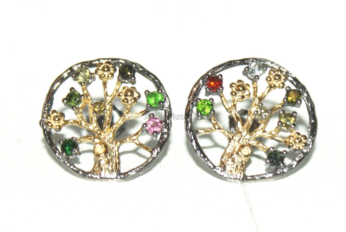 Designers Favorites Øreringe, Sterling sølv Rhodium 18 karat guldbelægning Sten: 14 x Tourmaline Stempel: 925 Diameter 1,7 cm. Ny produceret