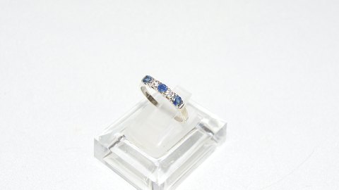 Ladies' ring in 14 carat gold with diamonds and blue sapphire