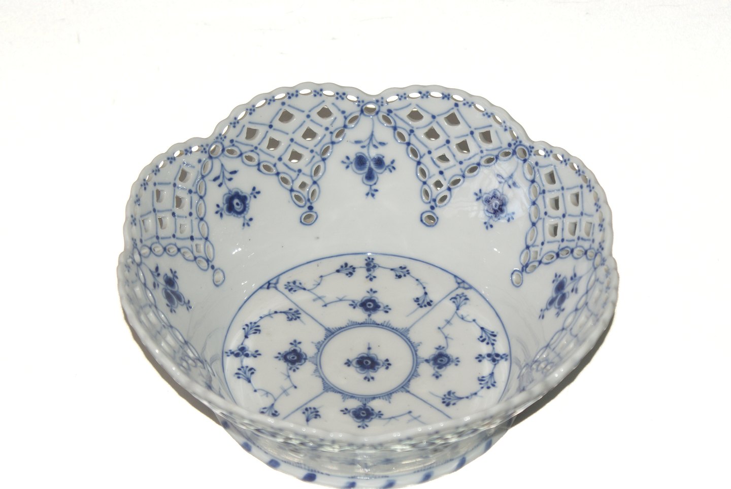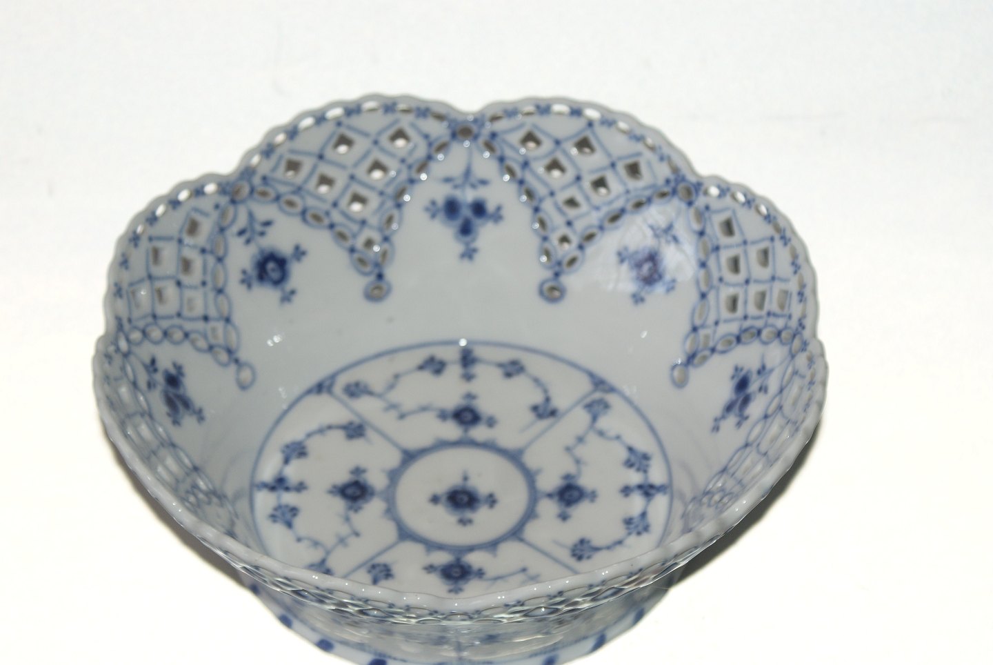 Royal Copenhagen Blue Fluted Full Lace, Round Fruit Basket Produced 1934 Decoration number 1/1061 1 sorting Diameter 23.5 cm. Height 9 cm. Beautiful and well maintained condition.