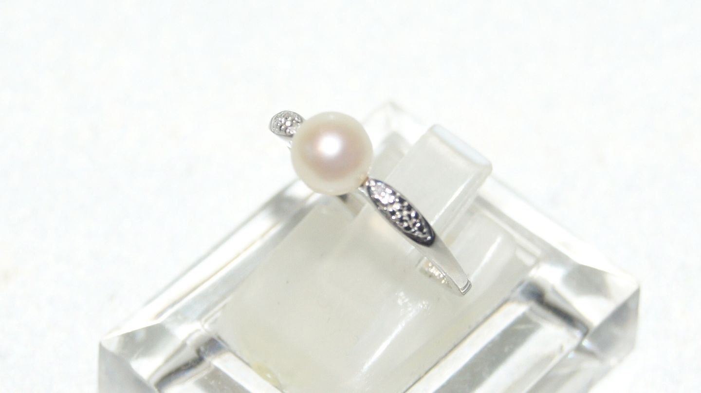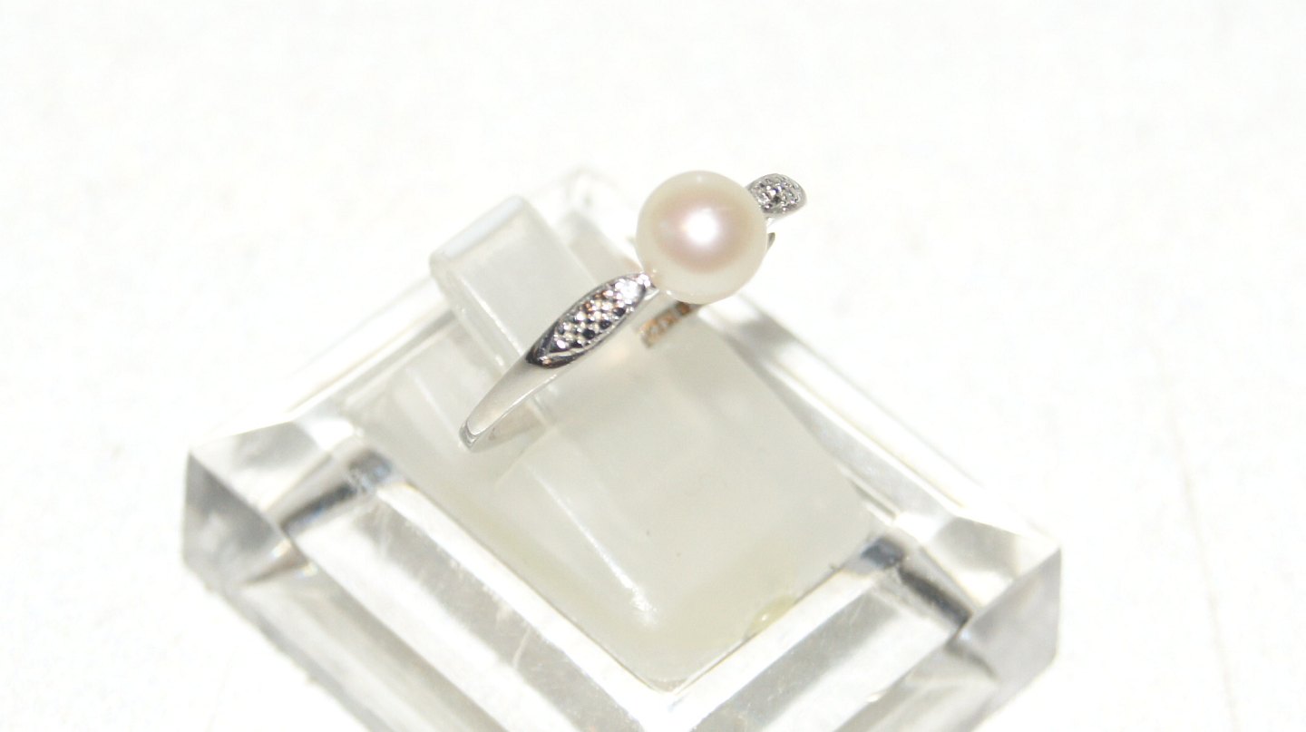 Elegant #Damering with #Perle in 8 carat White Gold