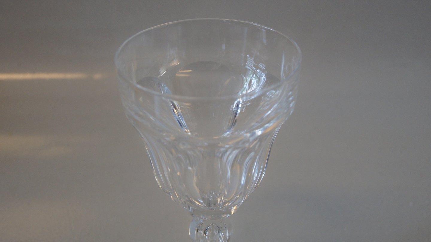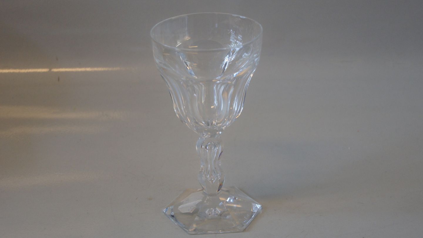 Lalaing crystal glass with facet cuts, hexagonal foot plate.