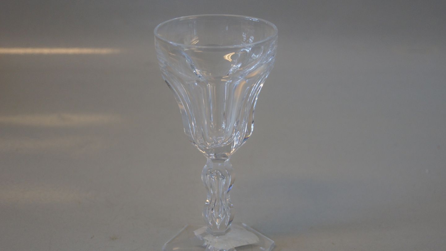 Lalaing crystal glass with facet cuts, hexagonal foot plate.
