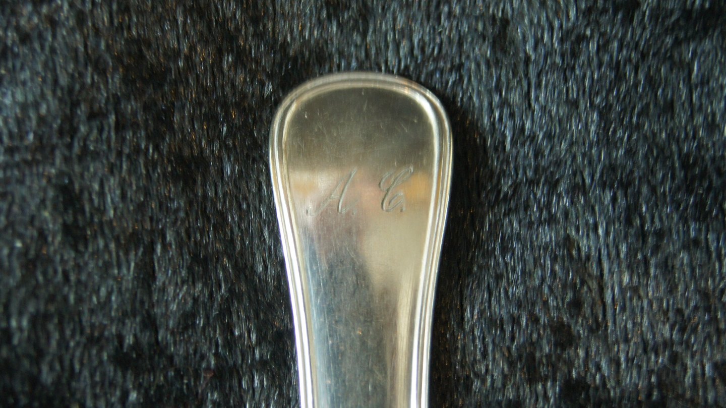 Coffee spoon #Double triple # Silver stain with Engraving back Produced by Cohr, Gense and several others. Length 13.5 cm approx Nice and well maintained condition