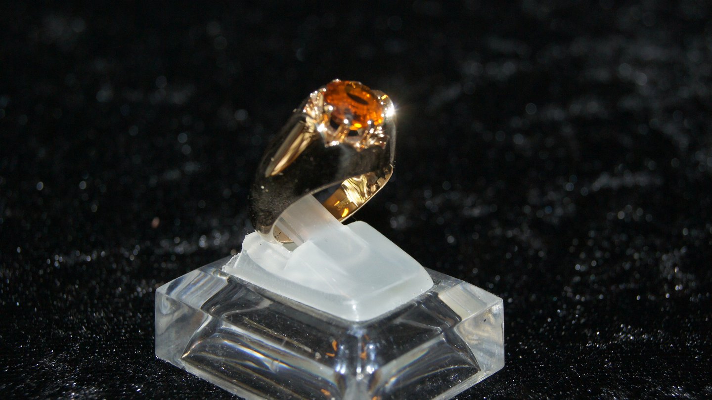 Elegant lady ring with Orange stone 14 carat gold Stamped 585 Size 54 Beautiful and Well Maintained. The item is not physically available in the store, contact us for viewing.
