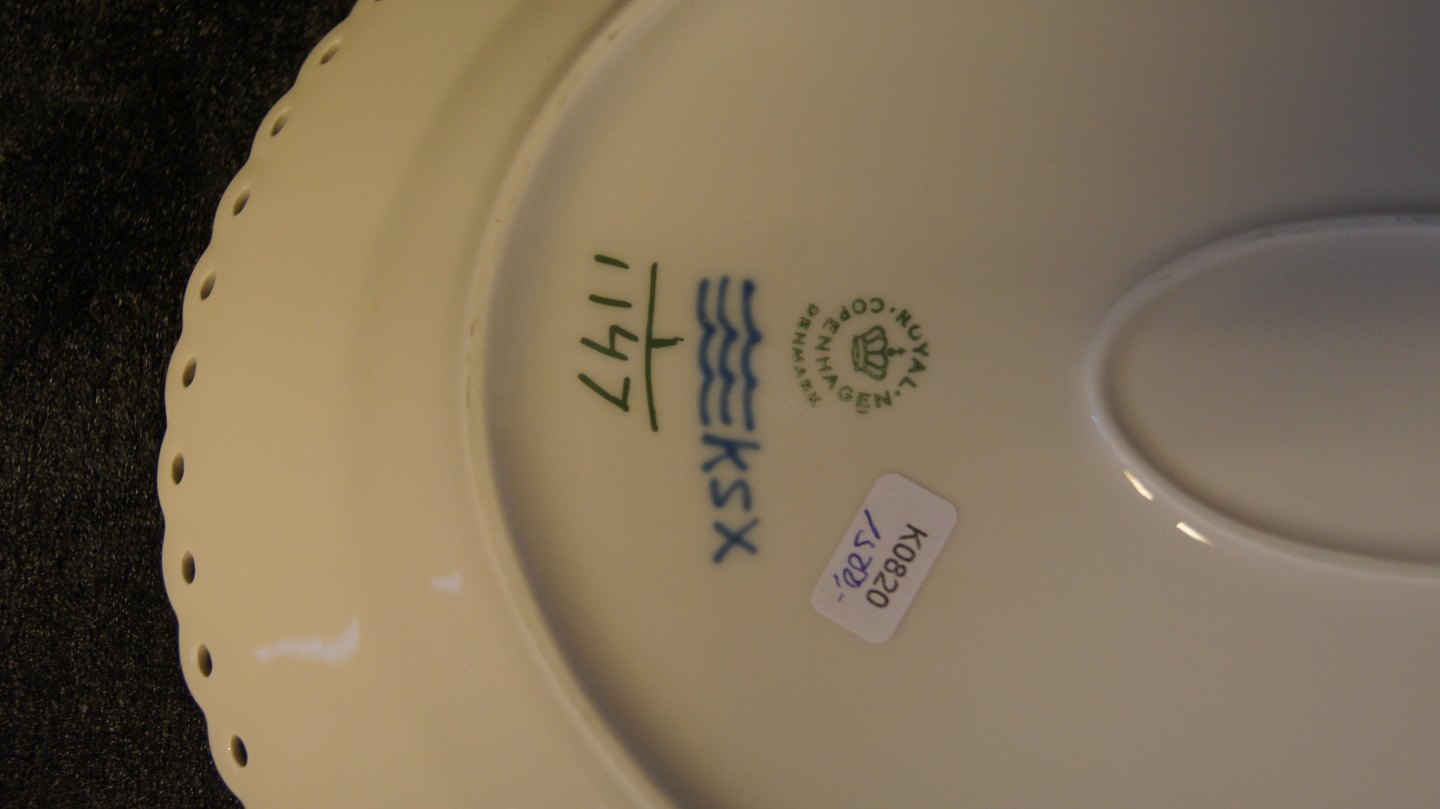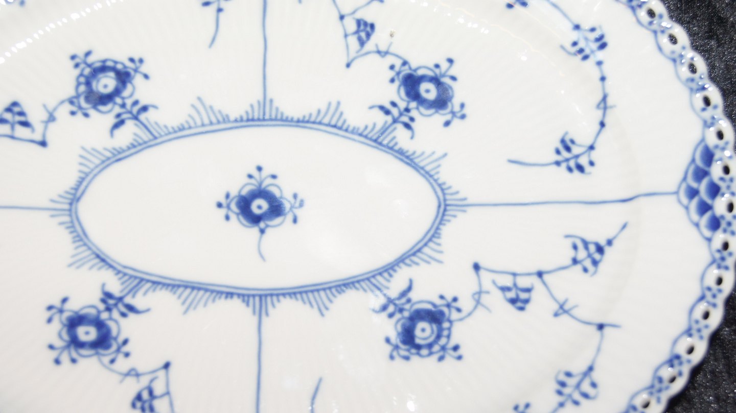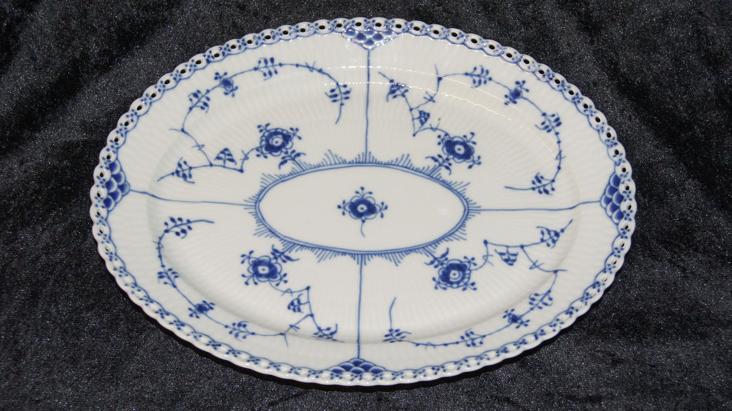 Royal Copenhagen Blue Fluted Full Lace, Oblong Dish. Employee sorting with burning defects Decoration number 1 / # 1147 or # 374 Length 29.5 cm.