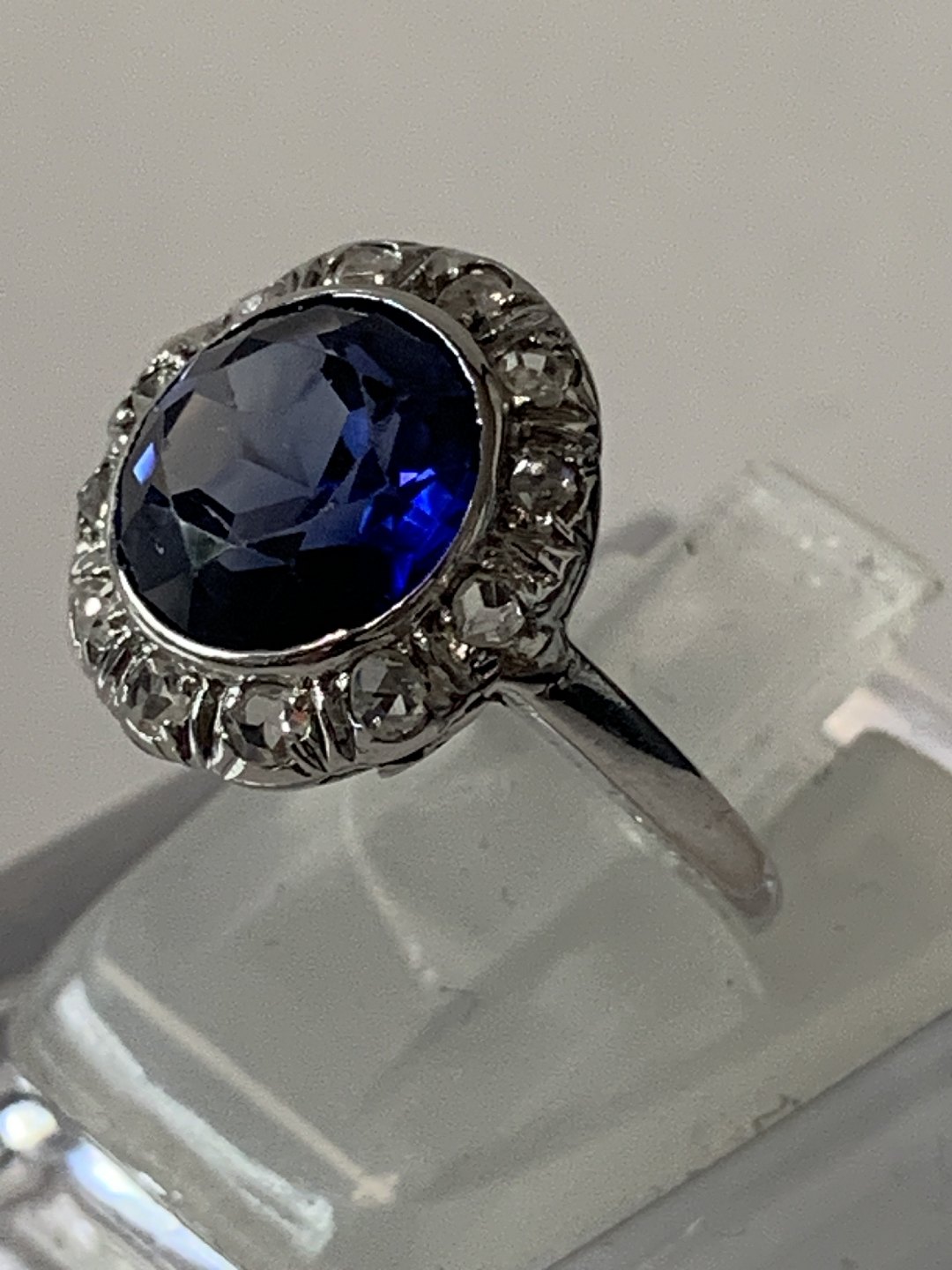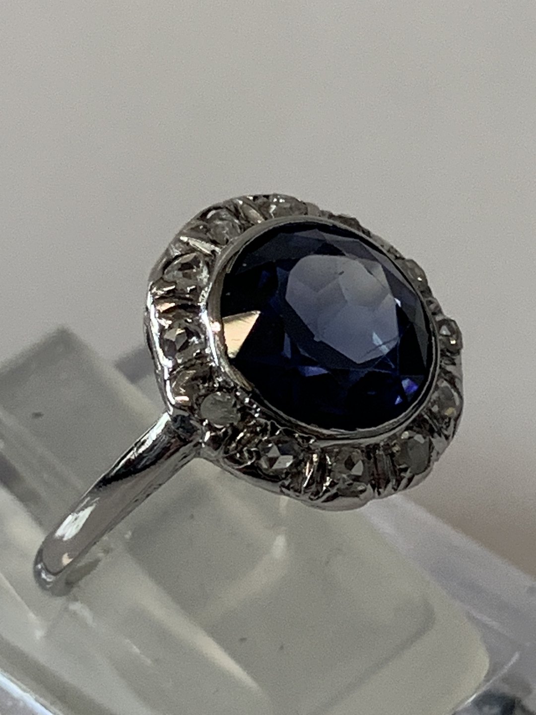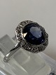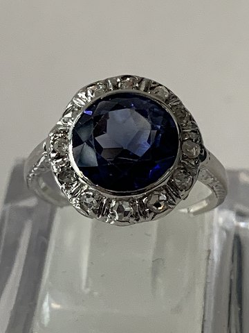 Rose ring in 14 carat white gold with diamonds and 1 blue sapphire