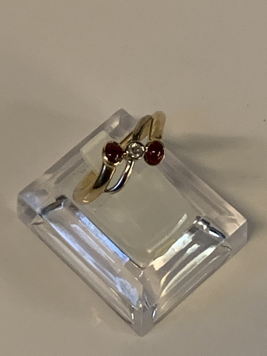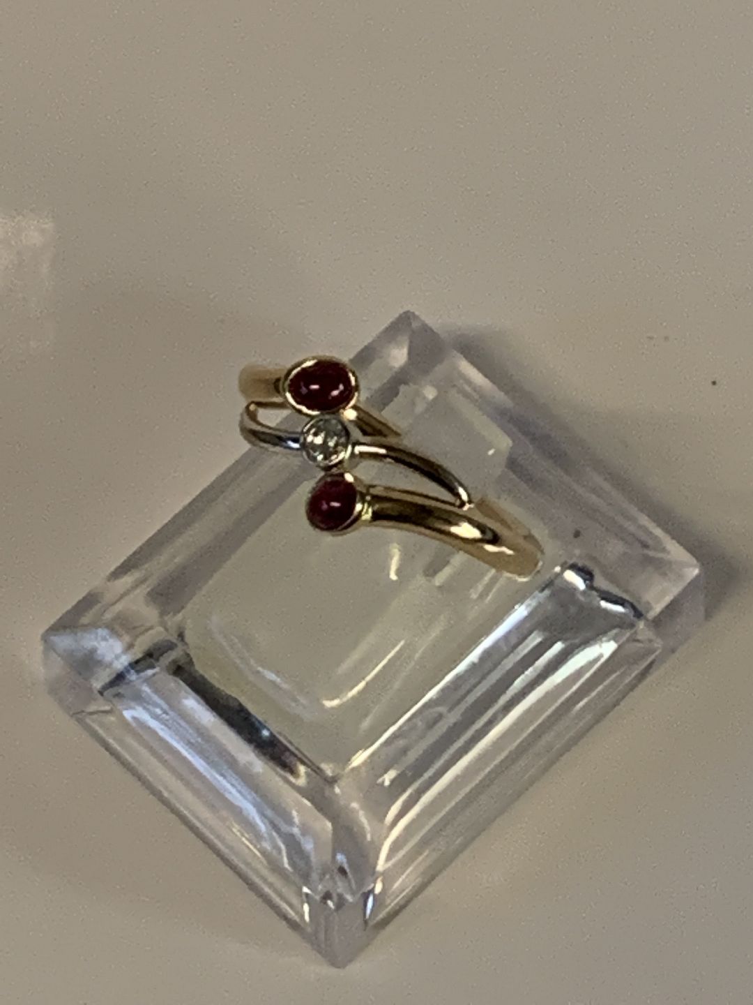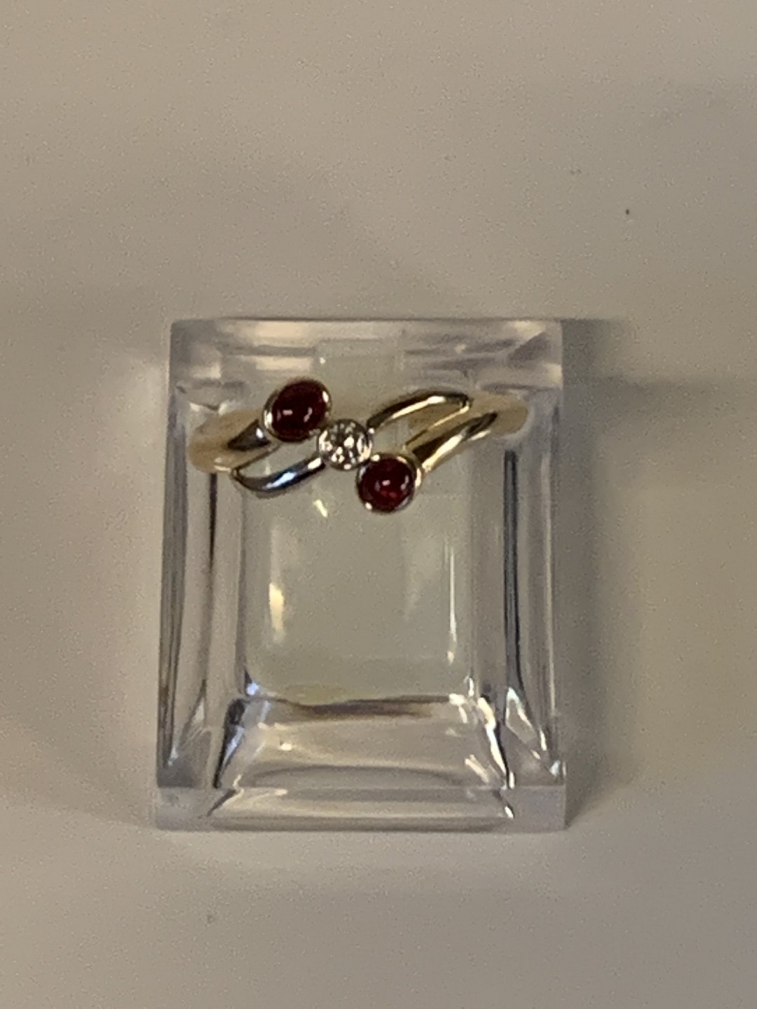 Ladies ring with brilliant and rubies in 14 carat red/white gold
