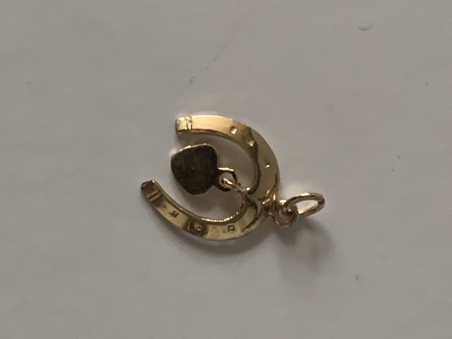 Hestesko med hjerte Charms / Vedhæng i 14 karat guld