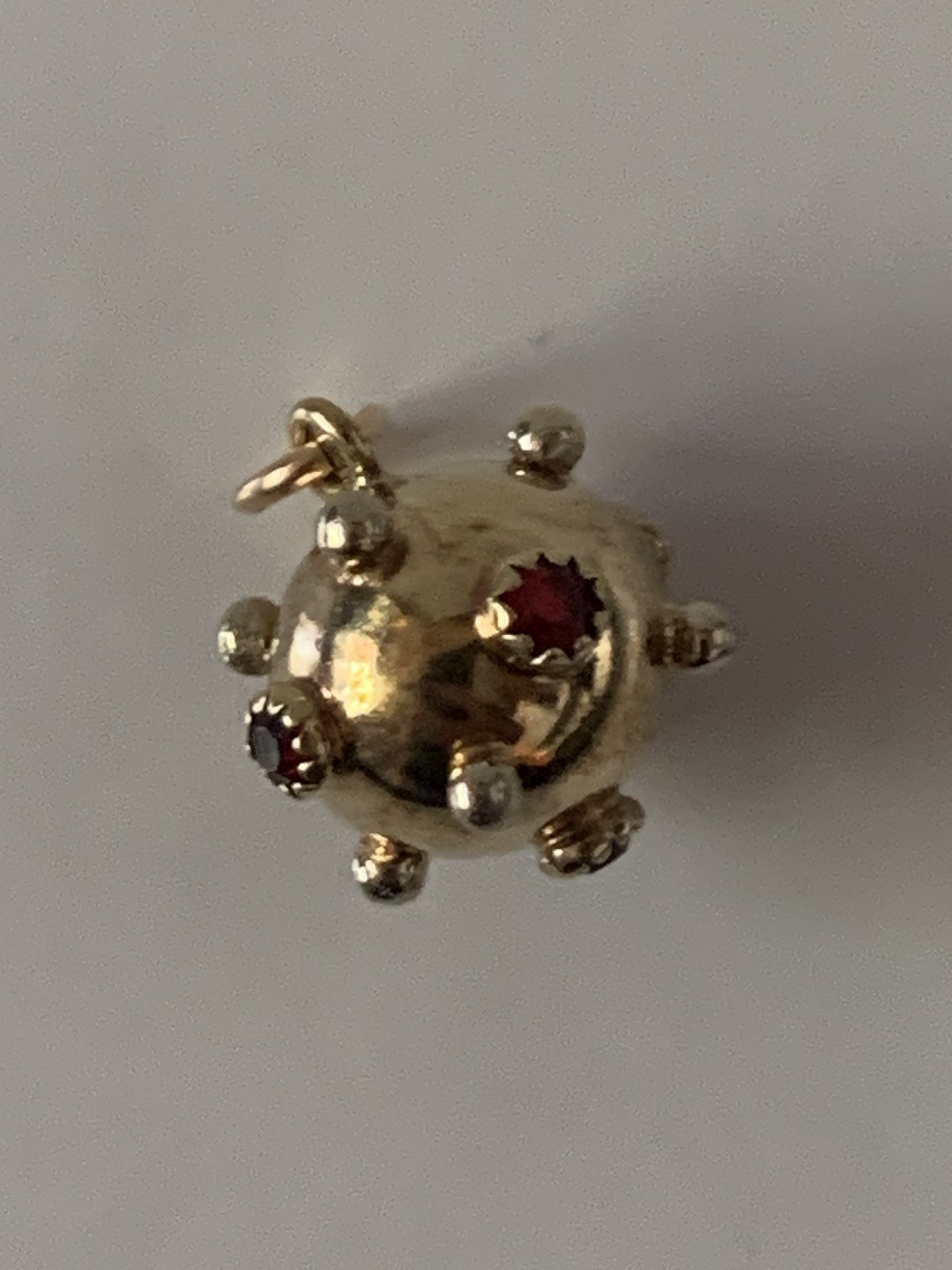 Kugle med røde sten Charms / Vedhæng i 14 karat guld