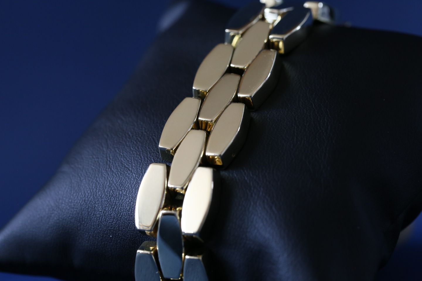 This gold bracelet in 14 carat solid gold is beautiful and exclusive. The simple uniform structure gives this gold bracelet a nice look on the wrist. The bracelet has a box lock that is easy to open and close. The bracelet can be worn both everyday and at parties, and will be a nice piece of jewelery for anyone with good style.
