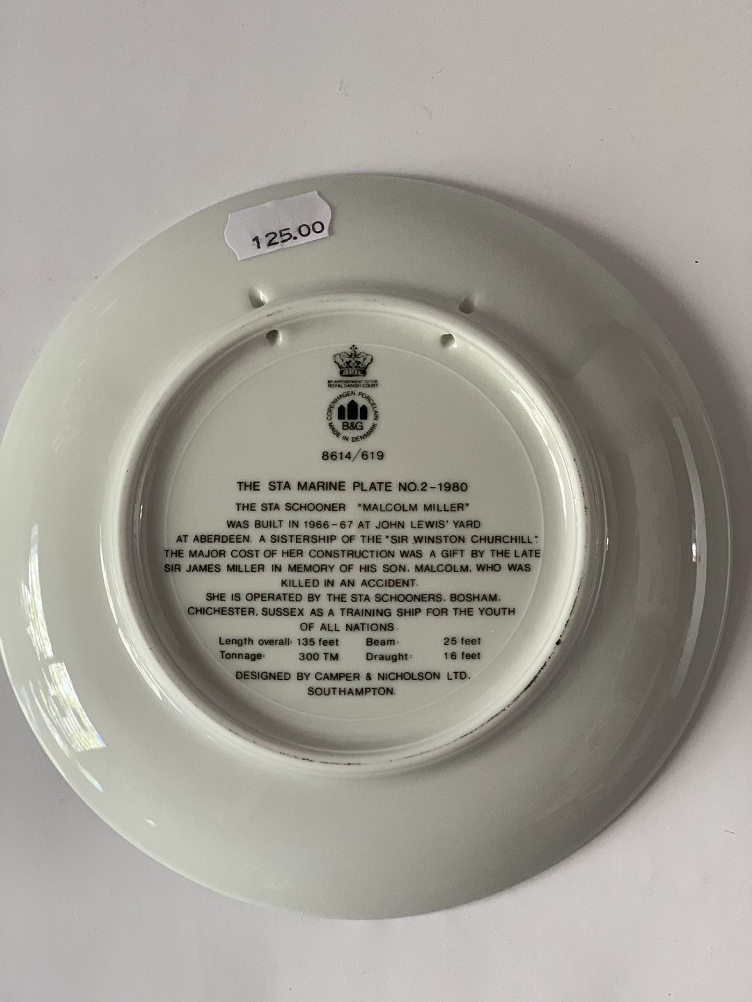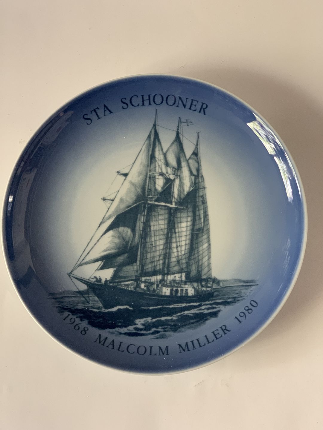 Bing og Grøndahl skibsplatte Dek nr. 8614/619 STA Schooner Malcolm Miller 1968-1980 Plate nr. 2-1980 Måler 17,7 cm Pæn og velholdt stand