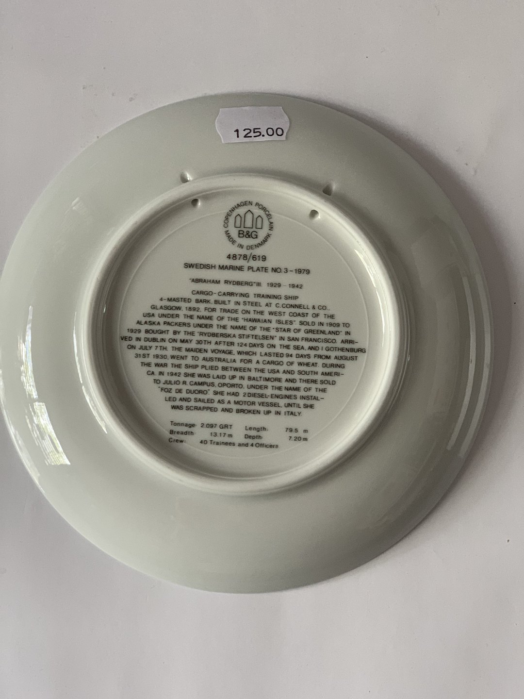 Bing and Grøndahl ship plate Deck no. 4878/619 Plate no. 3-1979 The school ship Abraham Rydberg years 1929-1942 Measures 17.7 cm in dia Nice and well maintained condition