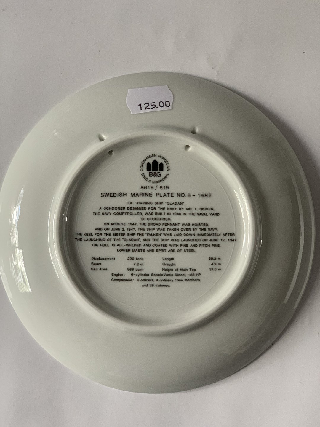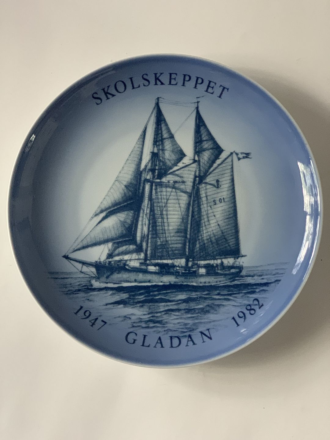 Bing og Grøndahl skibsplatte Dek nr. 8618/619 Platte nr. 6-1982 SKOLSKEPPET GLADAN år 1947-1982 Måler 17,7 cm Pæn og velholdt stand