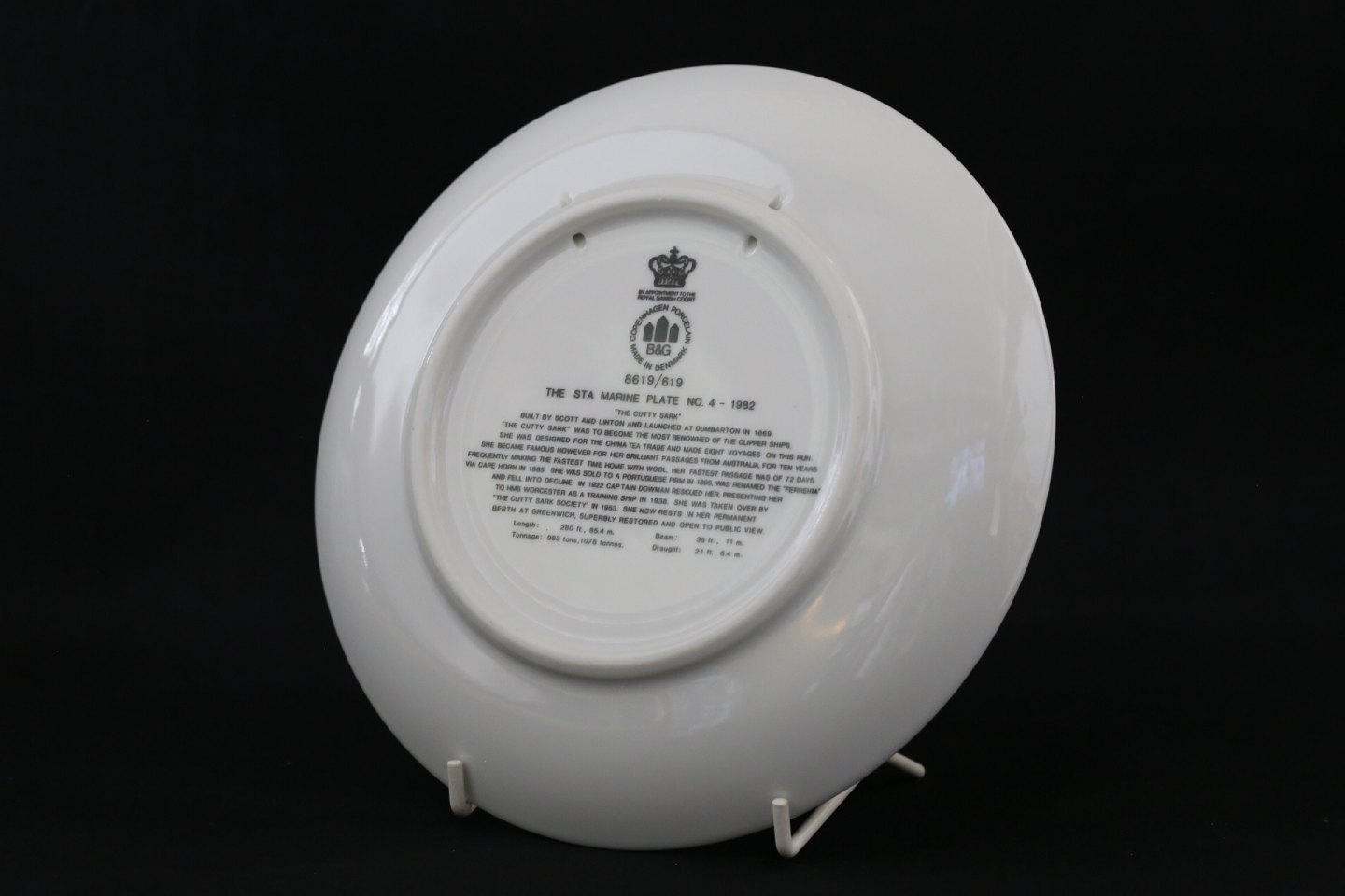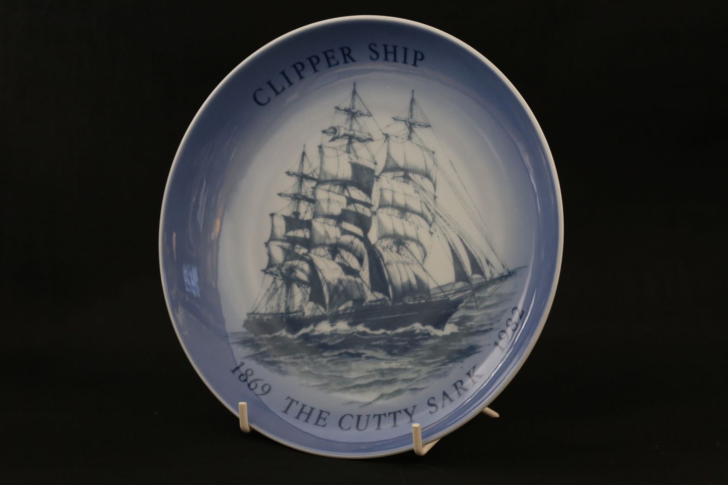Ship plate Bing & Grøndal, No. 4, from 1982. The plate is painted with Clipper Ship, with the text 1869 The Cutty Sark 1982. There is text about the ship on the back of the plate.