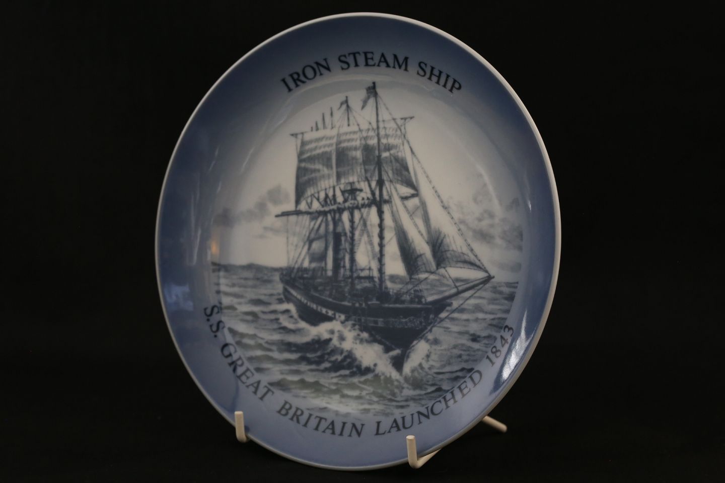 Skibsplatte, No. 12, fra 1990. Platten er bemalet med Iron steam ship, med teksten S.S. Great britain Launched 1843. Der er tekst om skibet på bagsiden af platten.