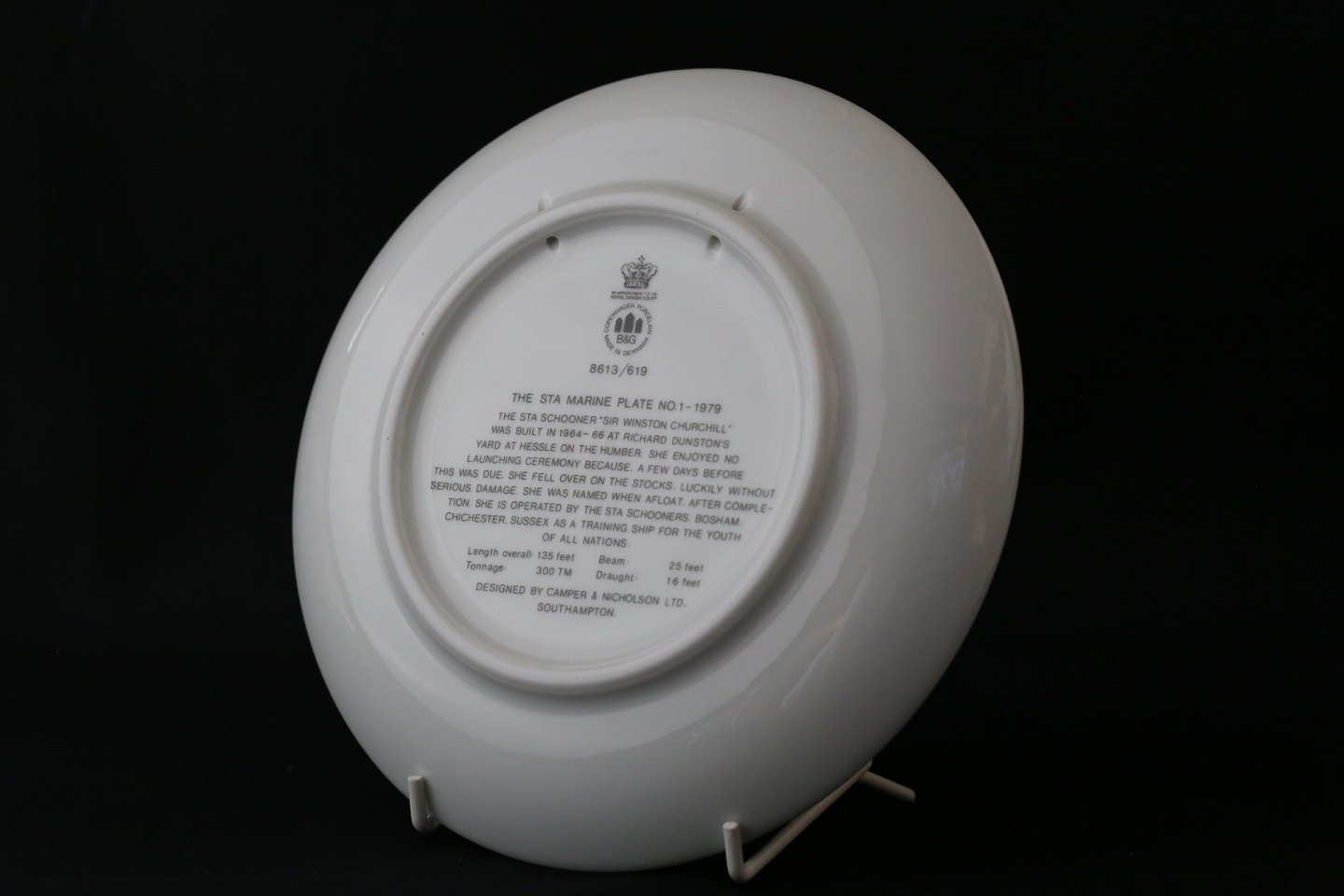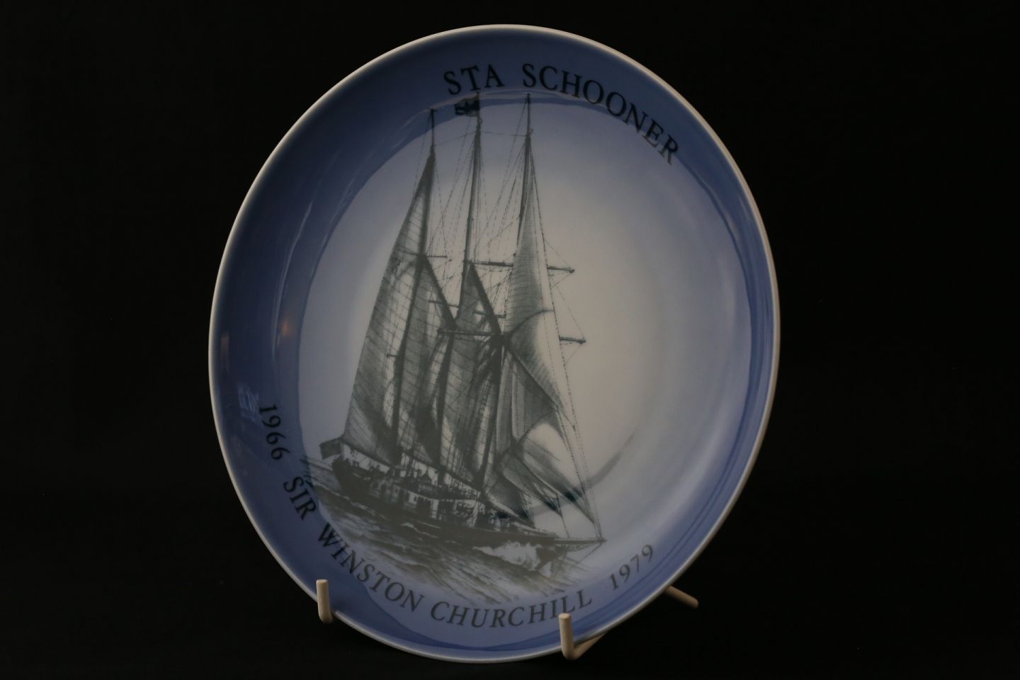 Ship plate from Bing & Grøndal No. 1, from 1979. The plate is painted with STA SCHOONER, with the text 1966 Sir Winston churchill 1979. There is text about the ship on the back of the plate.