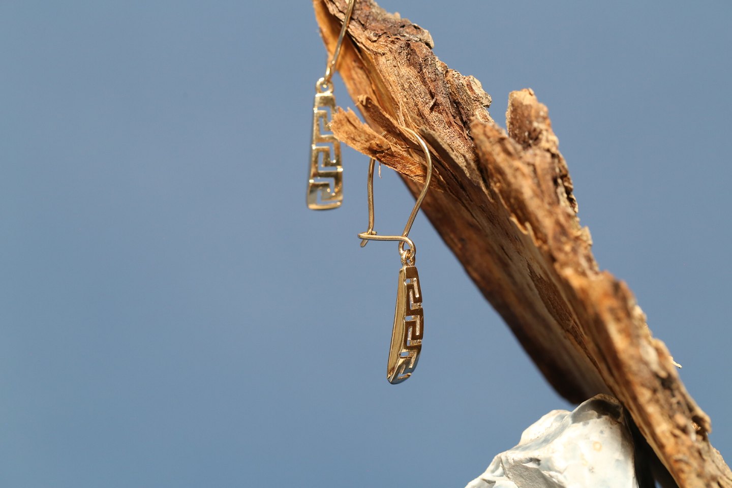 Smukke guldøreringe udformet i græsk nøglemønster, i 14 karat guld. Øreringene er elegante og med øsken til ørestift, giver disse øreringe liv. Det smukke klassiske mønster, giver øreringene stil og de vil passe til en flot kjole til festen. Brug dem måske også til hverdag - alt er muligt.