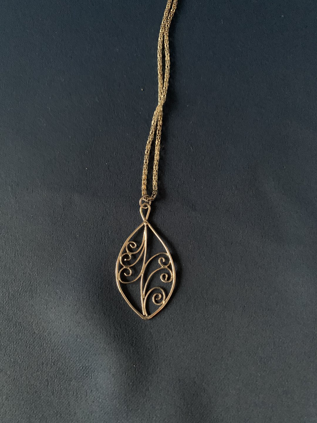 Beautiful necklace in sterling silver, with beautiful pendant with nice details. The pendant is shaped like a leaf, shaped in beautiful soft lines. The chain is 42 centimeters long and has a carabiner clasp. It is a beautiful piece of jewelery that suits both everyday life and parties.