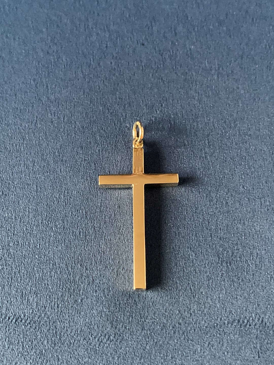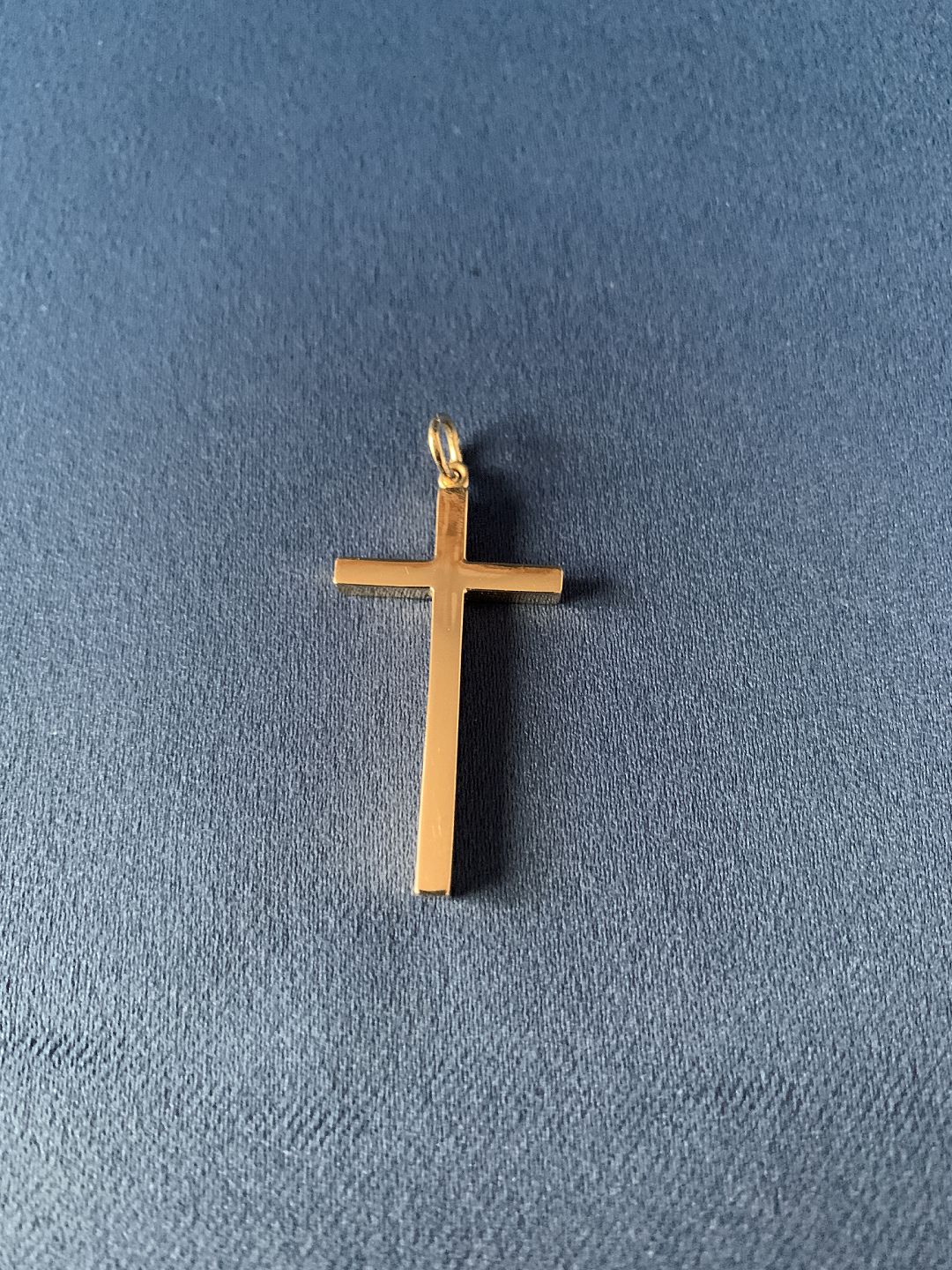 Nice little gold cross in 14 carat gold, for chain. The cross is a classic small gold cross that is ideal as a confirmation or christening gift. The gold cross is forged with straight lines that give it a classic shape. The size of the cross is perfect for a thin gold chain that will be worn for a lifetime.