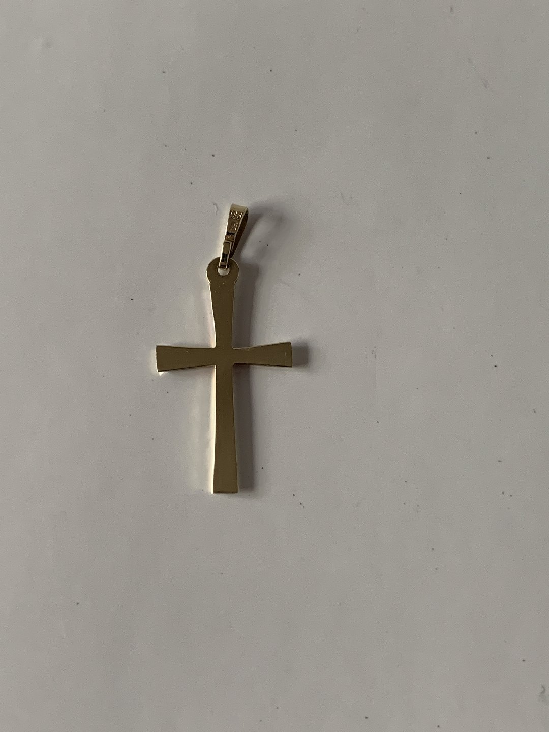 The timeless and iconic cross is a classic necklace. The pendant is made of 14 carat solid gold, and with its size is a visible and beautiful pendant. The cross is made in a simple motif, without inscriptions or signs. Stylish and minimalist, which is great for all occasions and for all types of clothing.