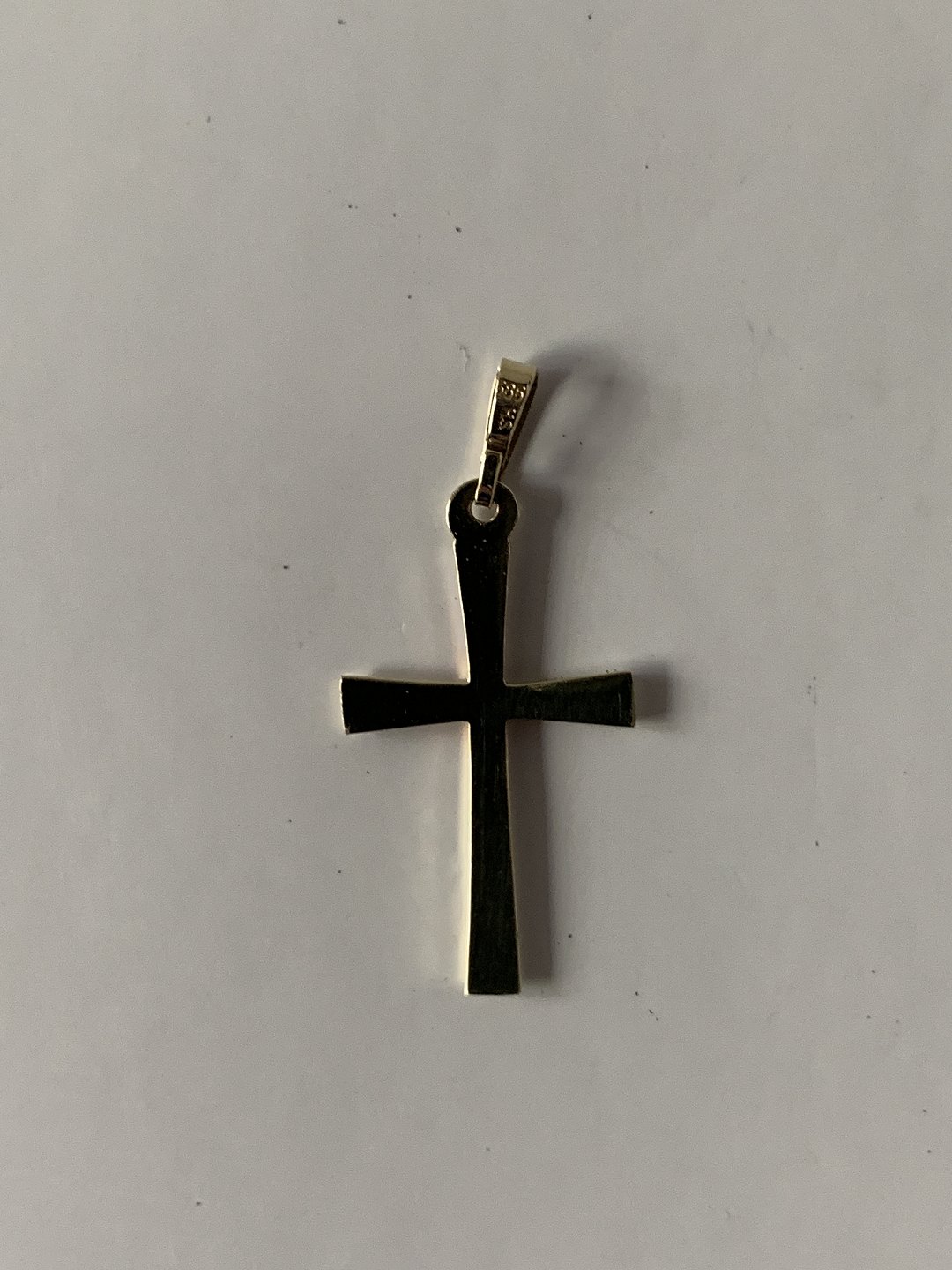 Beautiful classic gold cross in 14 carat gold, stamped 585 HS, for chain.