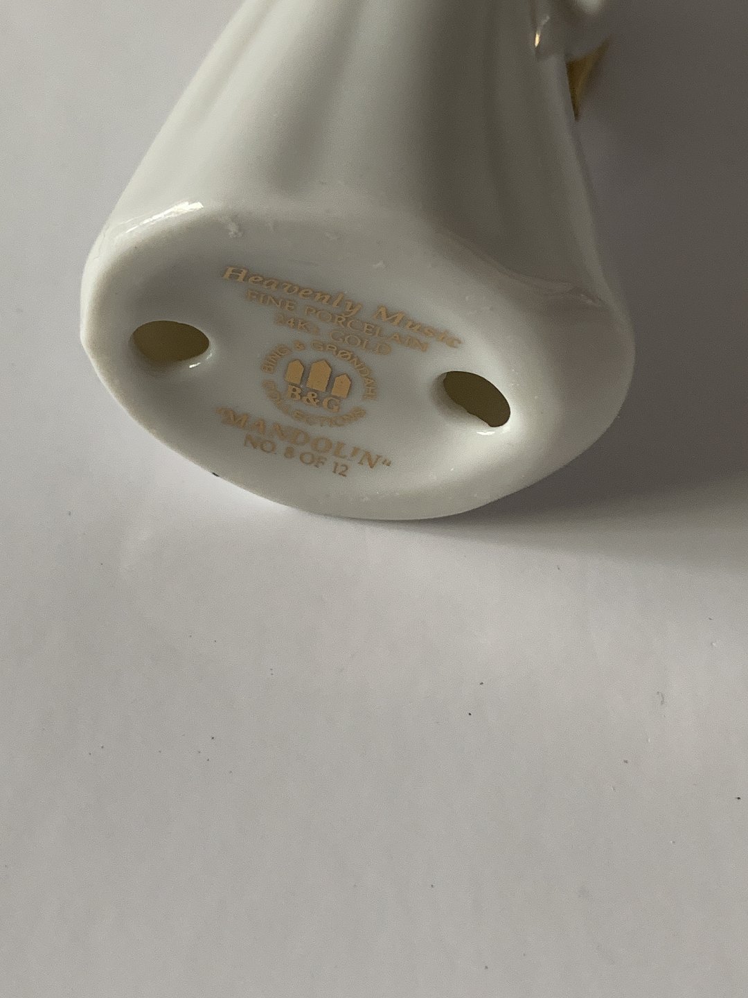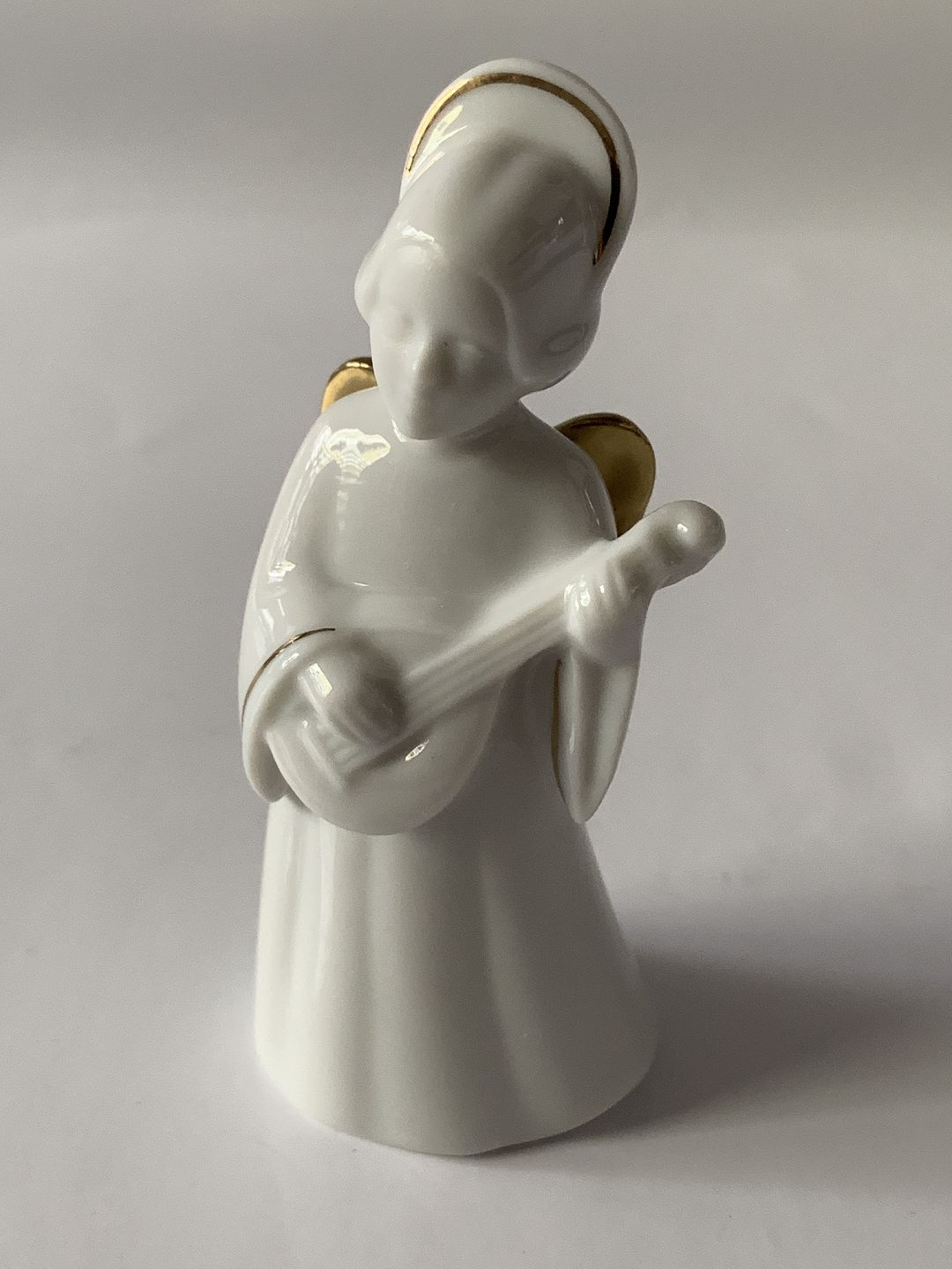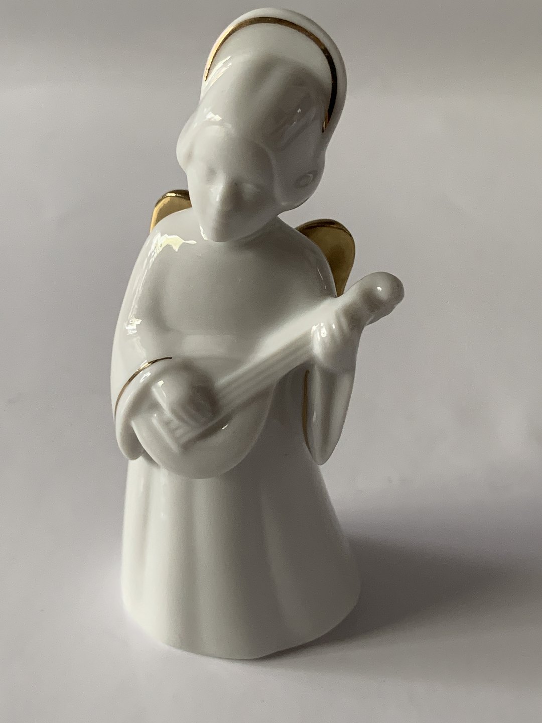 Bing & Grondahl. Heavenly Music. Mandolin No. 8 of 12. White porcelain angel with gold inlay and gold wings (24 carat). The series is called "Angel with Instruments" and consists of 12 pieces.