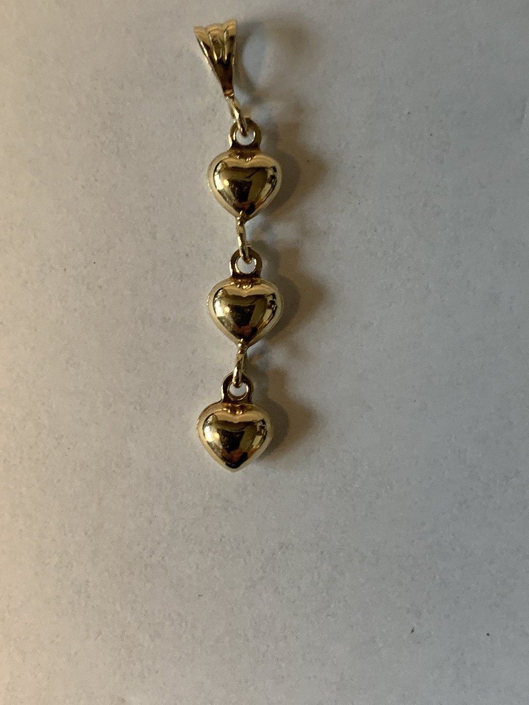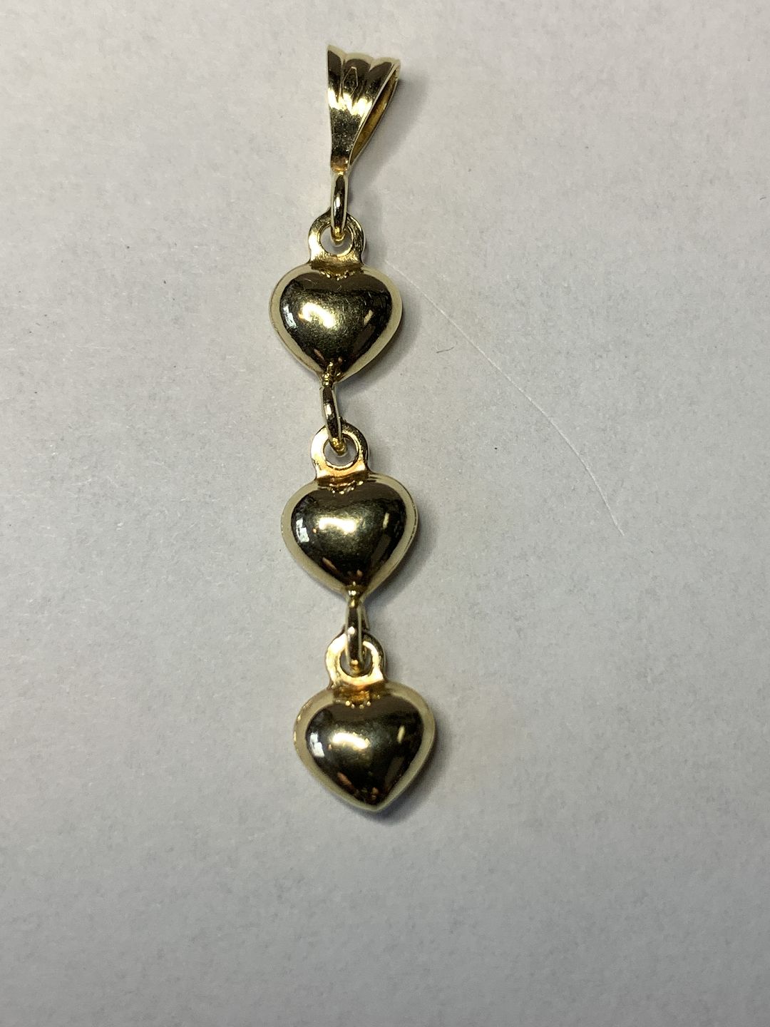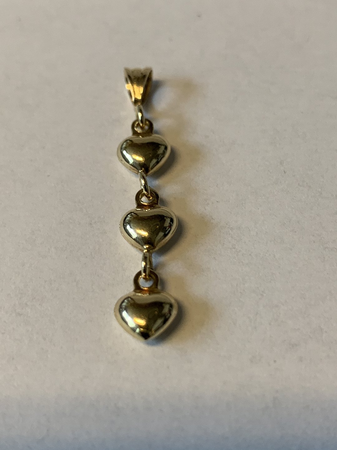 Pendant with three gold hearts in 14 carat gold, stamped 585