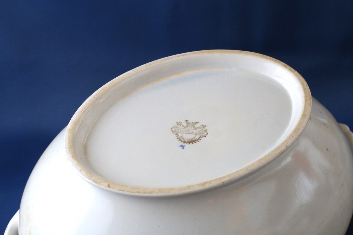 Villeroy & Boch, Blå Olga, Suppeterrin uden låg Længde 33 cm. Bred 23 cm Højde 13 cm Brugt med letter brugsspor velholdt stand.