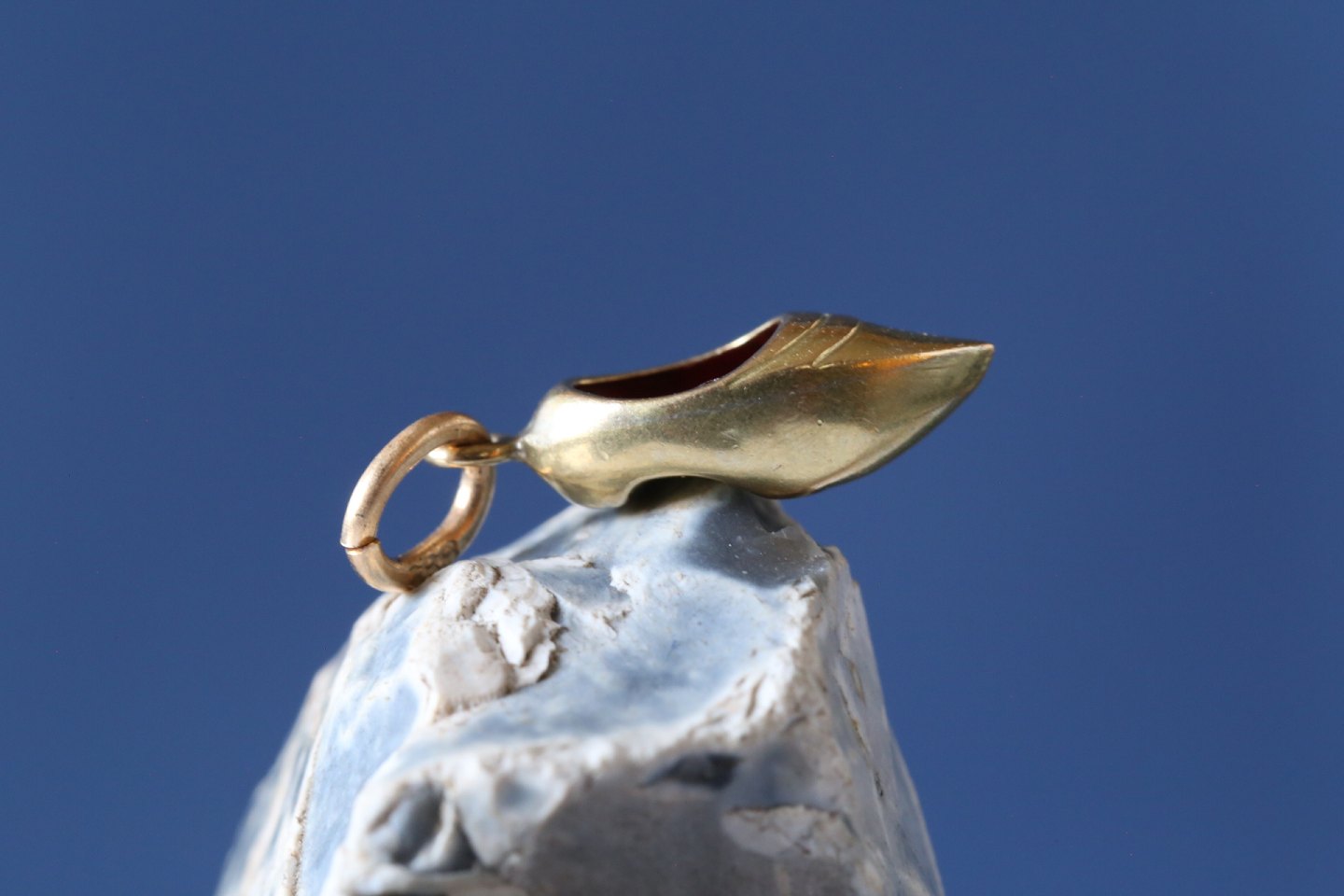 Pendant in 14 carat gold, Clogs. Stamped 585.