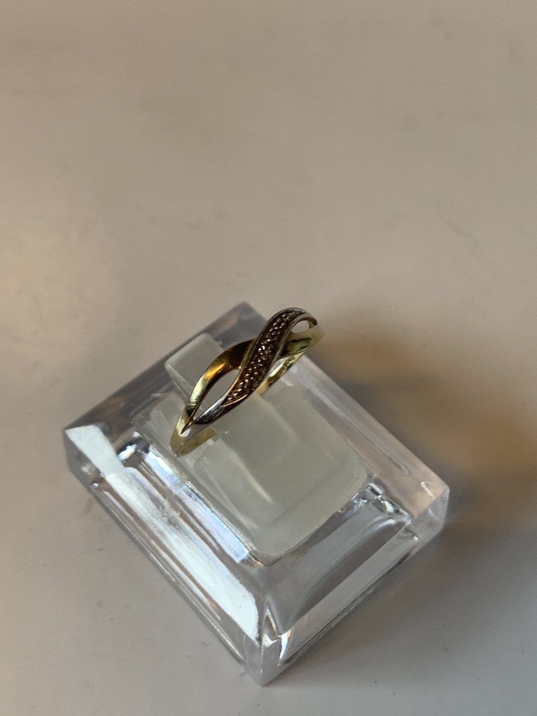 Ladies diamond ring in 14 Karat 2 colored gold, Stamped BX 585 Size: 61 / 19.42 mm. Beautiful and well maintained. The item is not physically available in the store. Contact us for a demonstration.