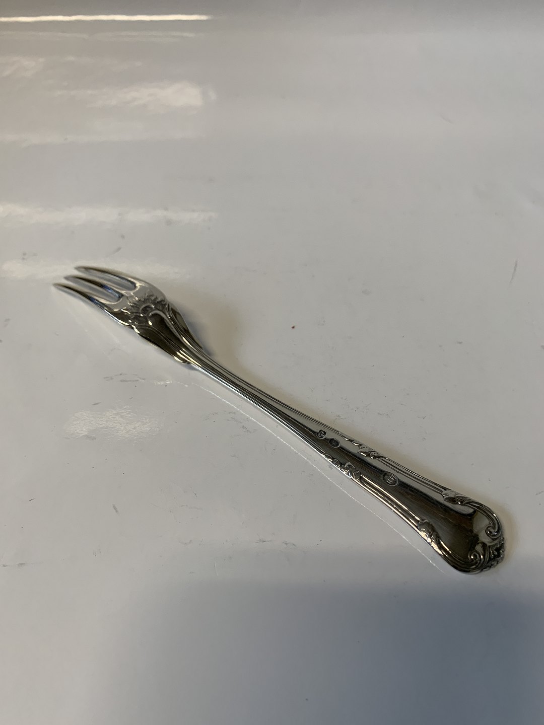 Herregaard Sølv, Frugtgaffel Cohr. Længde ca 14,5 cm. Velholdt stand Alt bestik poleret og pakke i pose