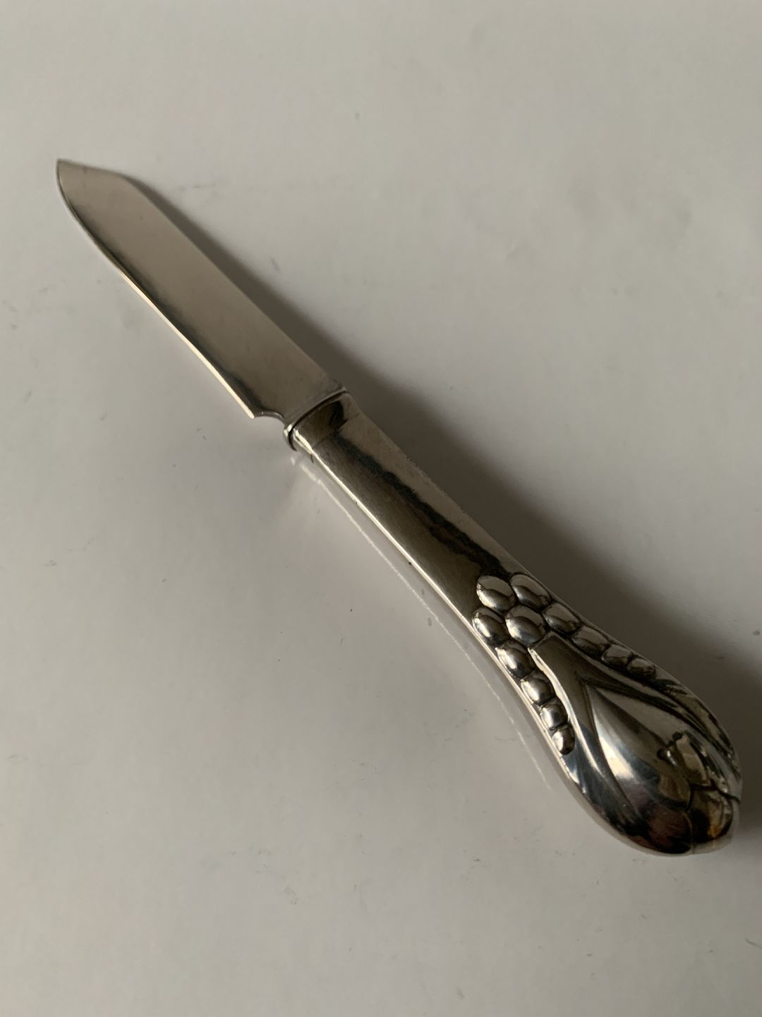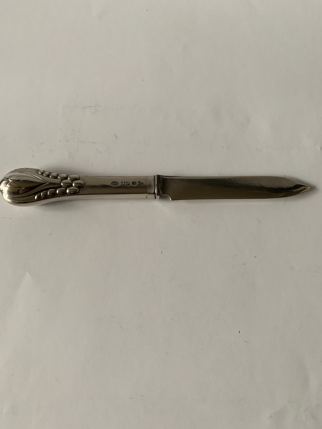 Evald Nielsen Nr. 3 Ostekniv Sølv Stemplet 830 Evald Nielsen Længde. 16 cm Pæn og velholdt stand Alt bestik er polleret og pakke i pose