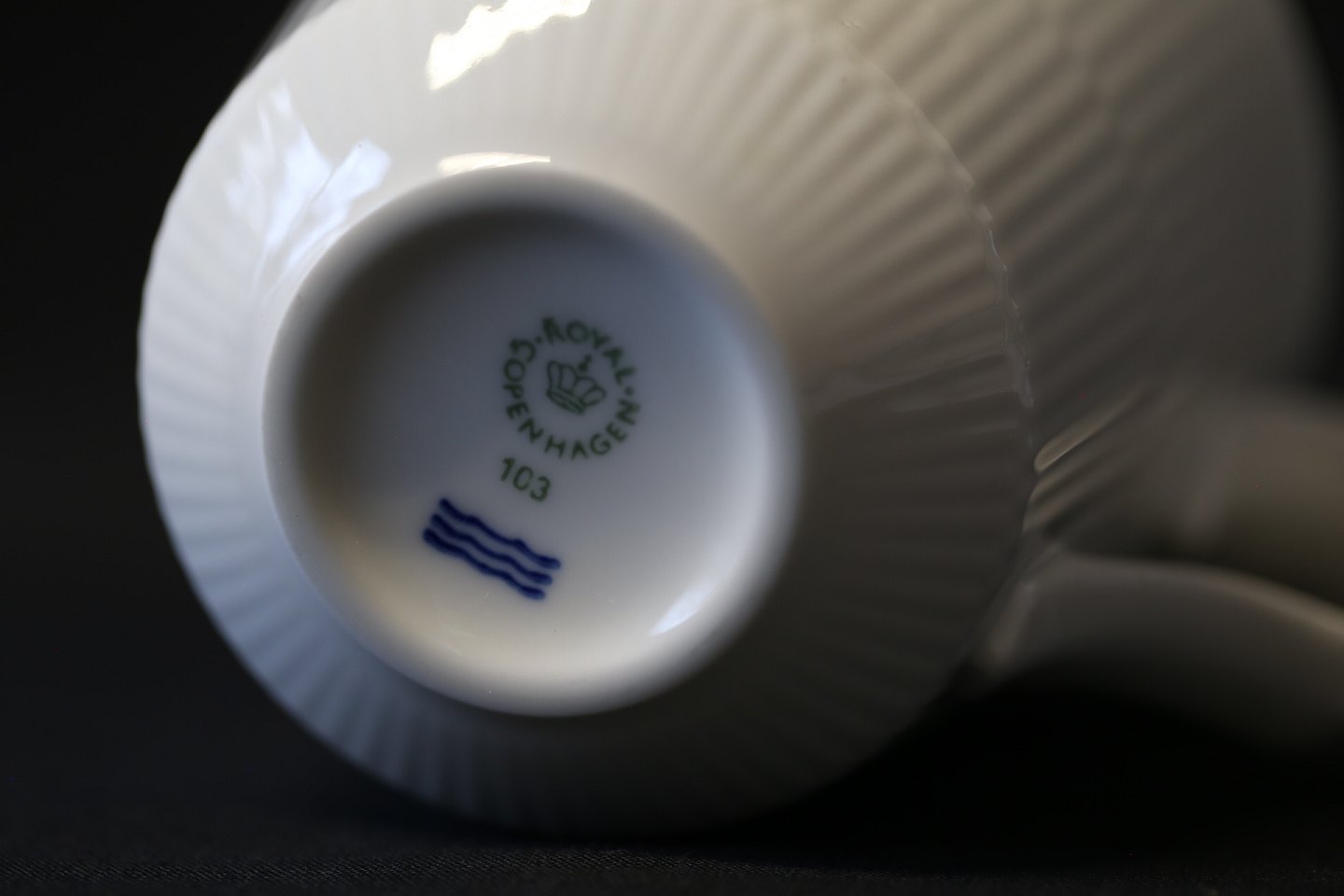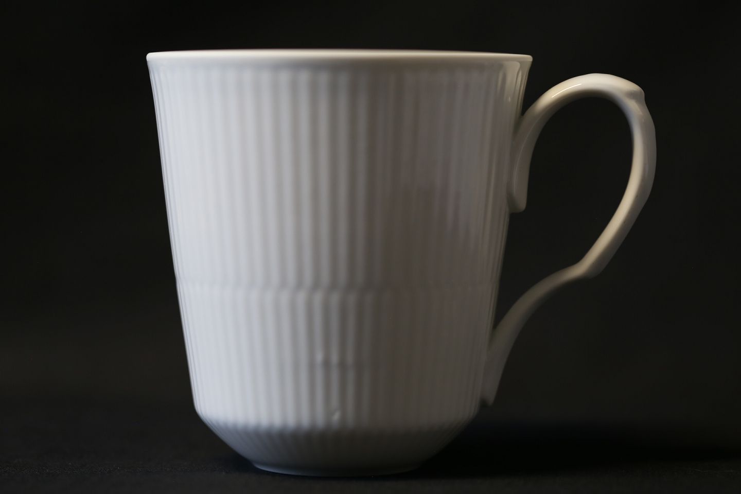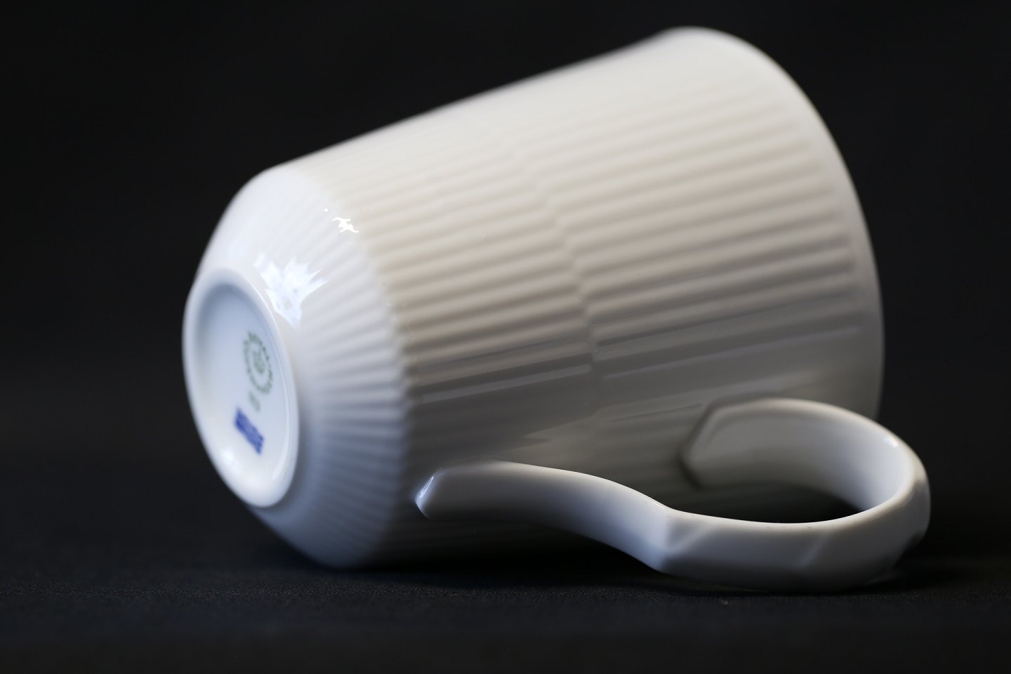 Med denne flotte hvidriflet kop fra Royal Copenhagen, er der ingen undskyldning for at springe morgenkaffen over. Denne kop har fantastisk ergonomi, der gør det til en glæde at nyde kaffen i fred og ro.