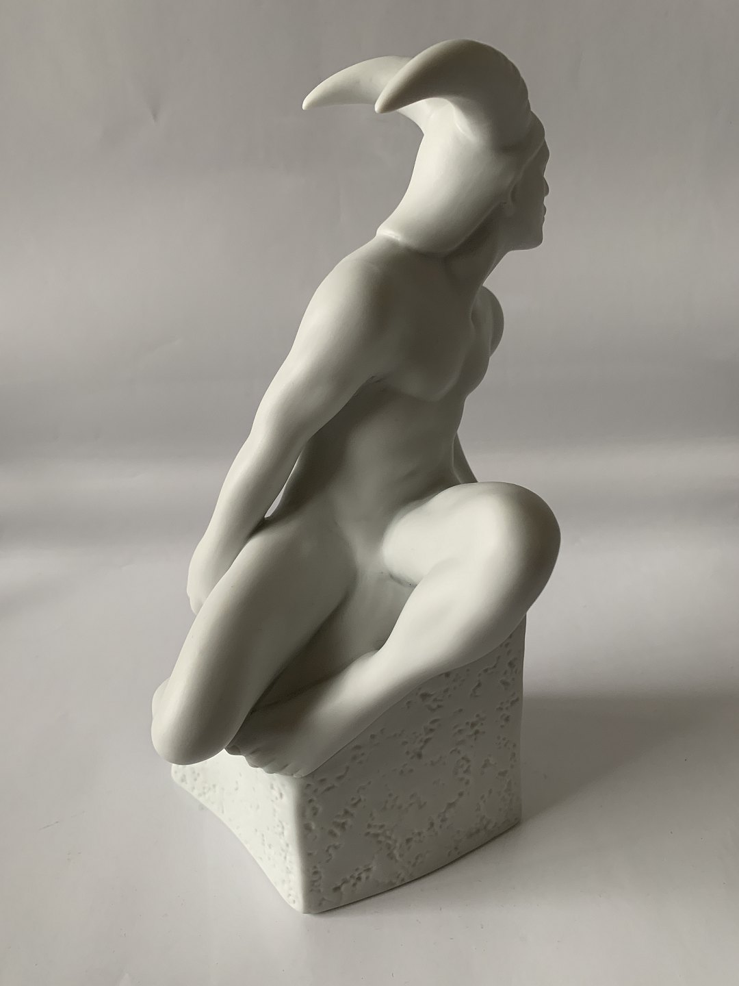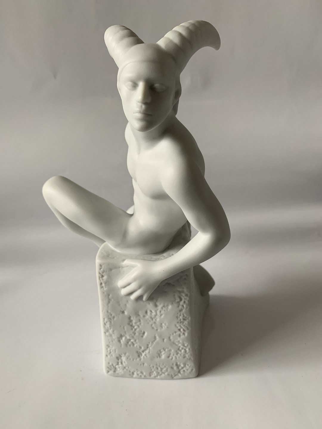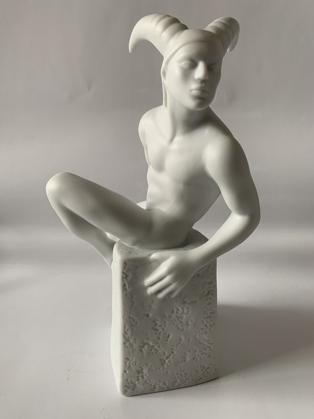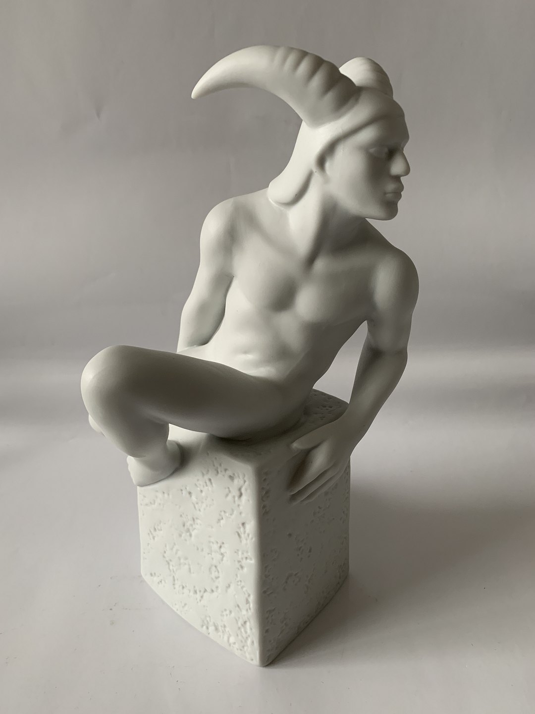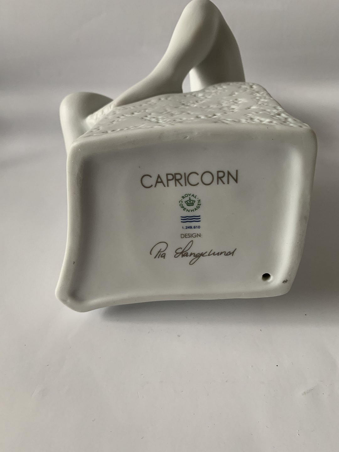 Royal Copenhagen figur, Mandligt stjernetegn, Stenbuk (Capricorn). Designet af Pia Langelund. Dekorationsnummer 1249 610. 1. sortering. Højde 26,0 cm. Perfekt stand uden fejl.