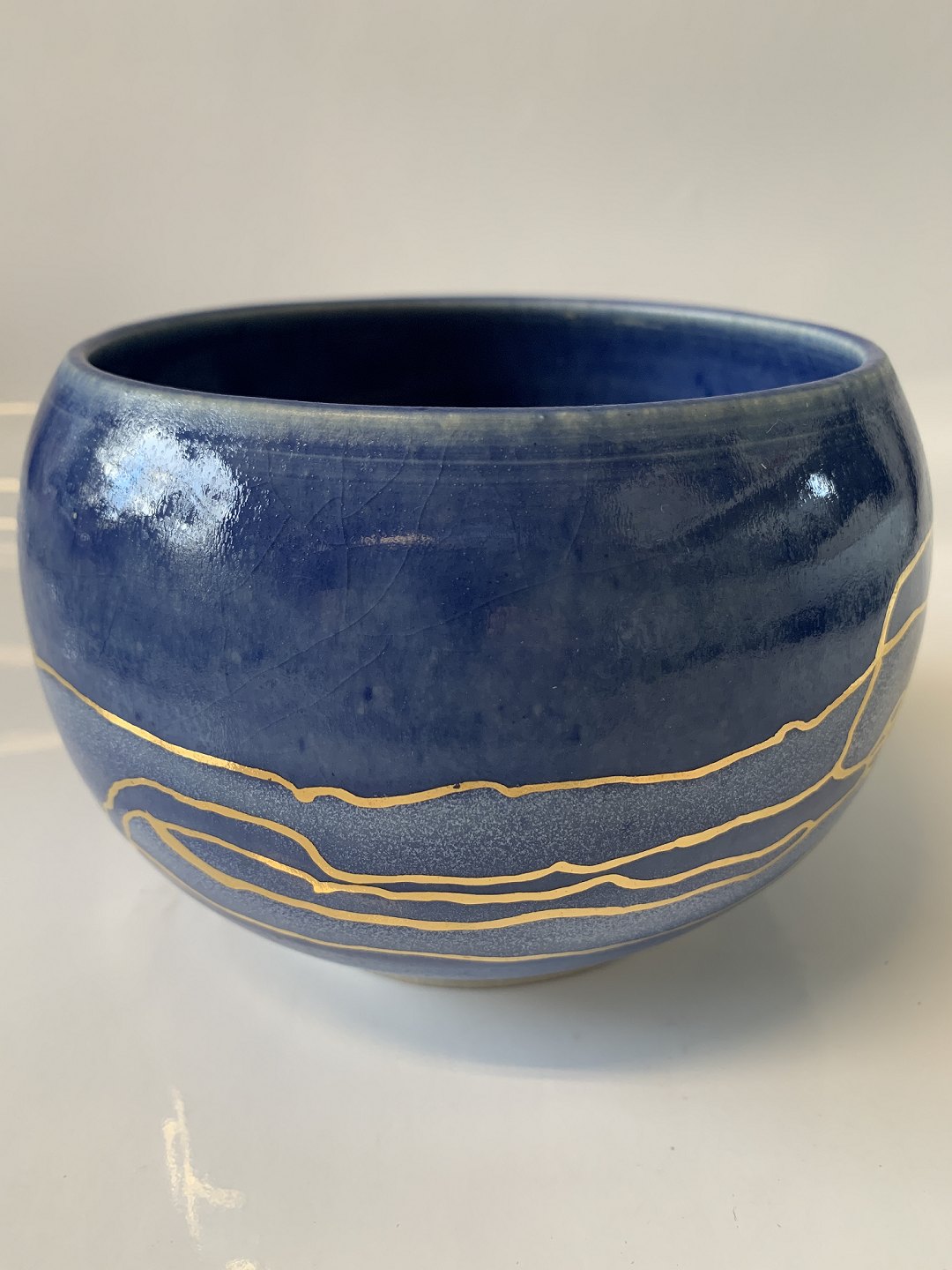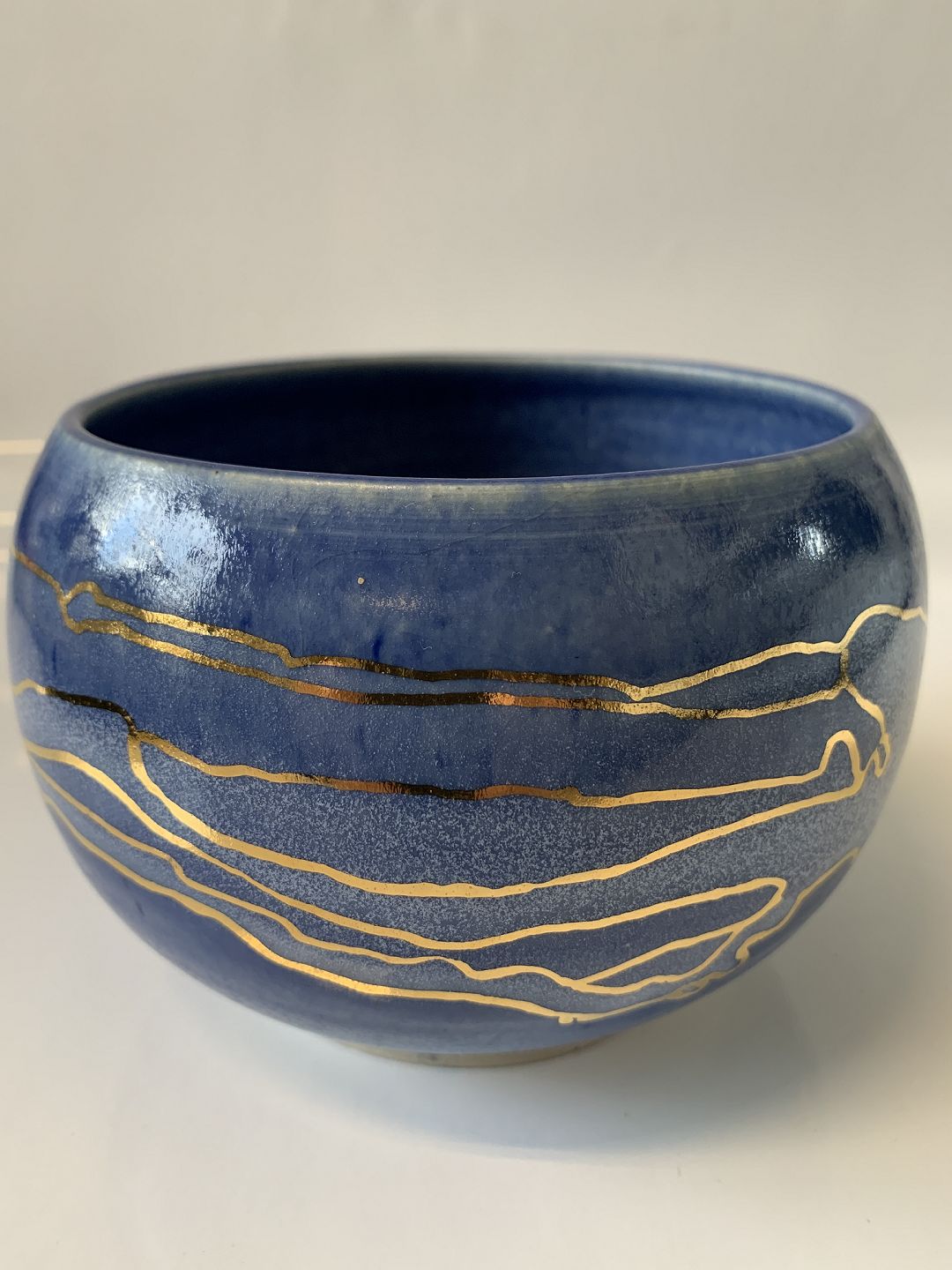 To-tonet lavendelblå Skål med guld detaljer fra Sylvest Keramik.