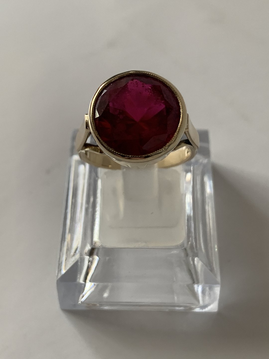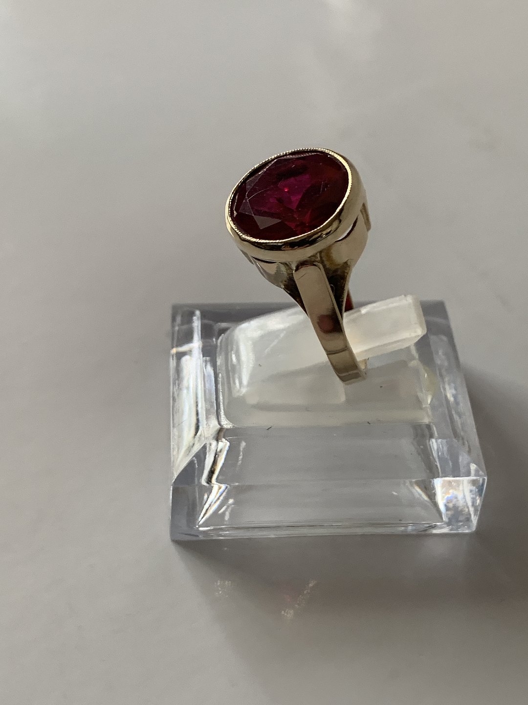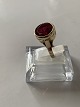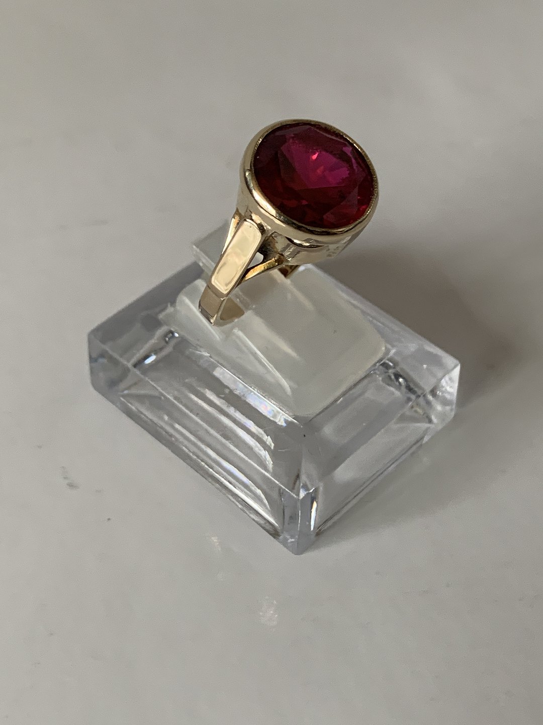 Damering i 14 karat guld med stor rød sten, stemplet 585, størrelse 56