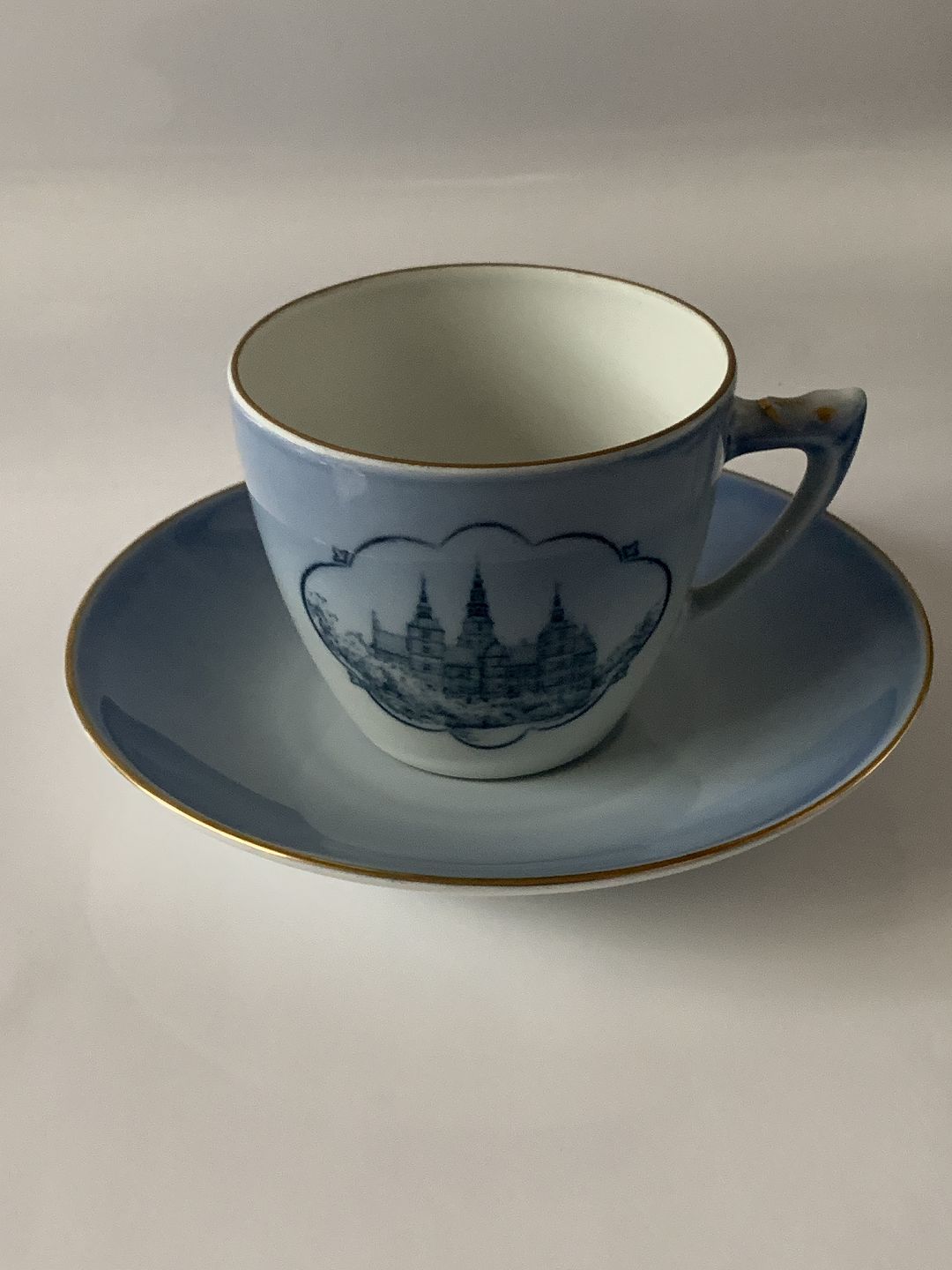 Bing & Grøndahl Slotsstellet, kaffekop og underkop med slottet Rosenborg. Dekorationsnummer 305. 1. sortering. Perfekt Stand