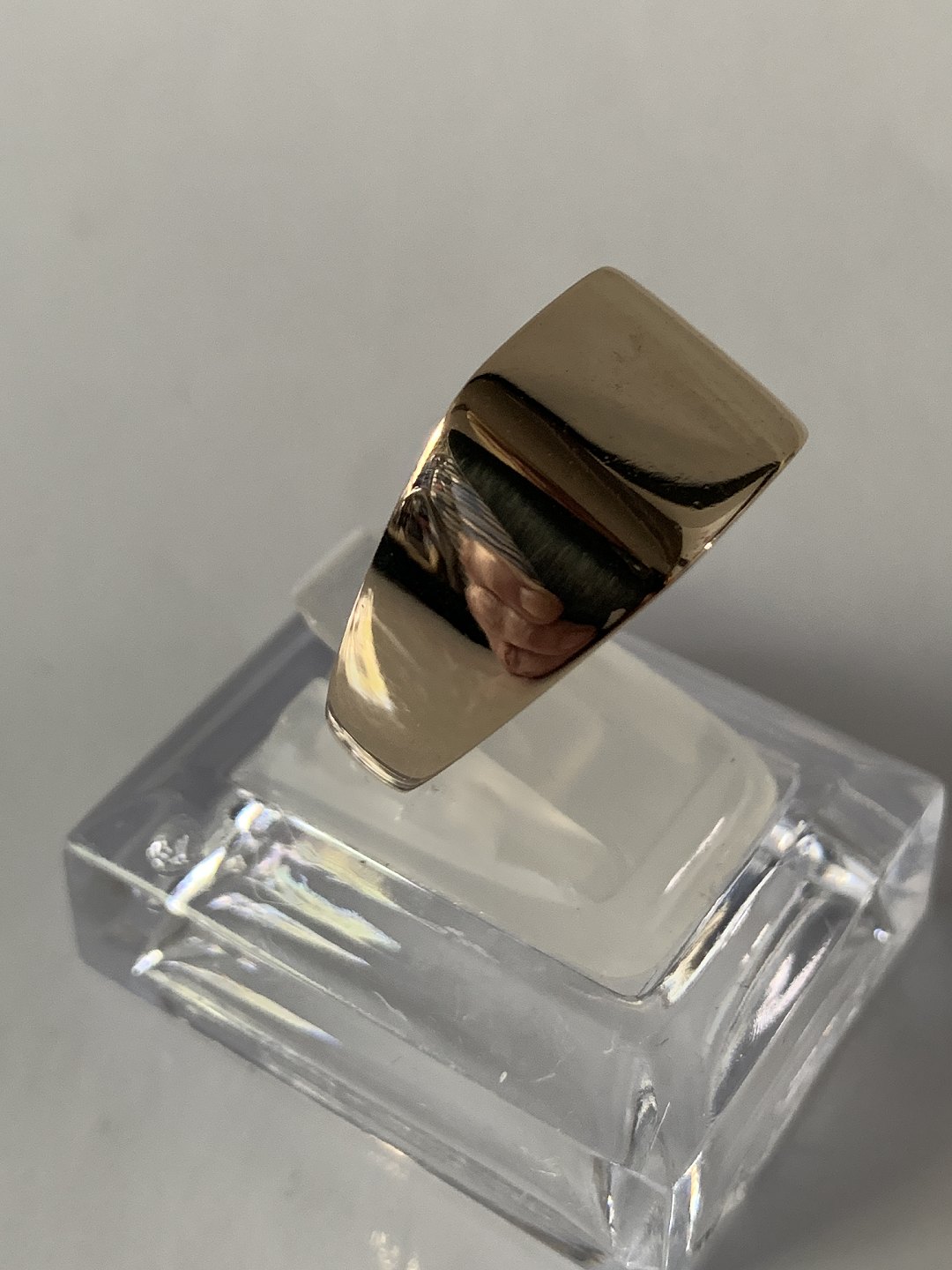 Beautiful and elegant men's ring with beautiful lines and a stylish look. Attention has been paid to the details, and the structure of the ring is made with care. The top of the ring is a flat disc, without a pattern. This makes the ring timeless and suitable for any occasion.