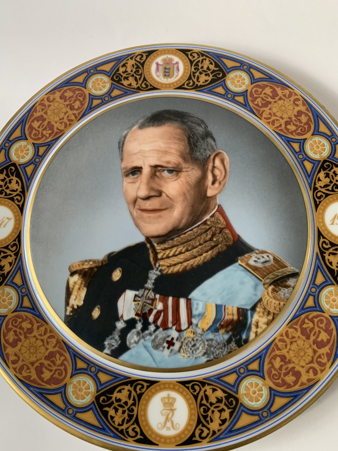 Nice royal plate with motif of King Frederik the 9th from Bing & Grøndal. The plate is made in a limited edition of 5000 pieces. A royal plate is a beautiful tribute to a regent, and this plate portrays his highness with great elegance.