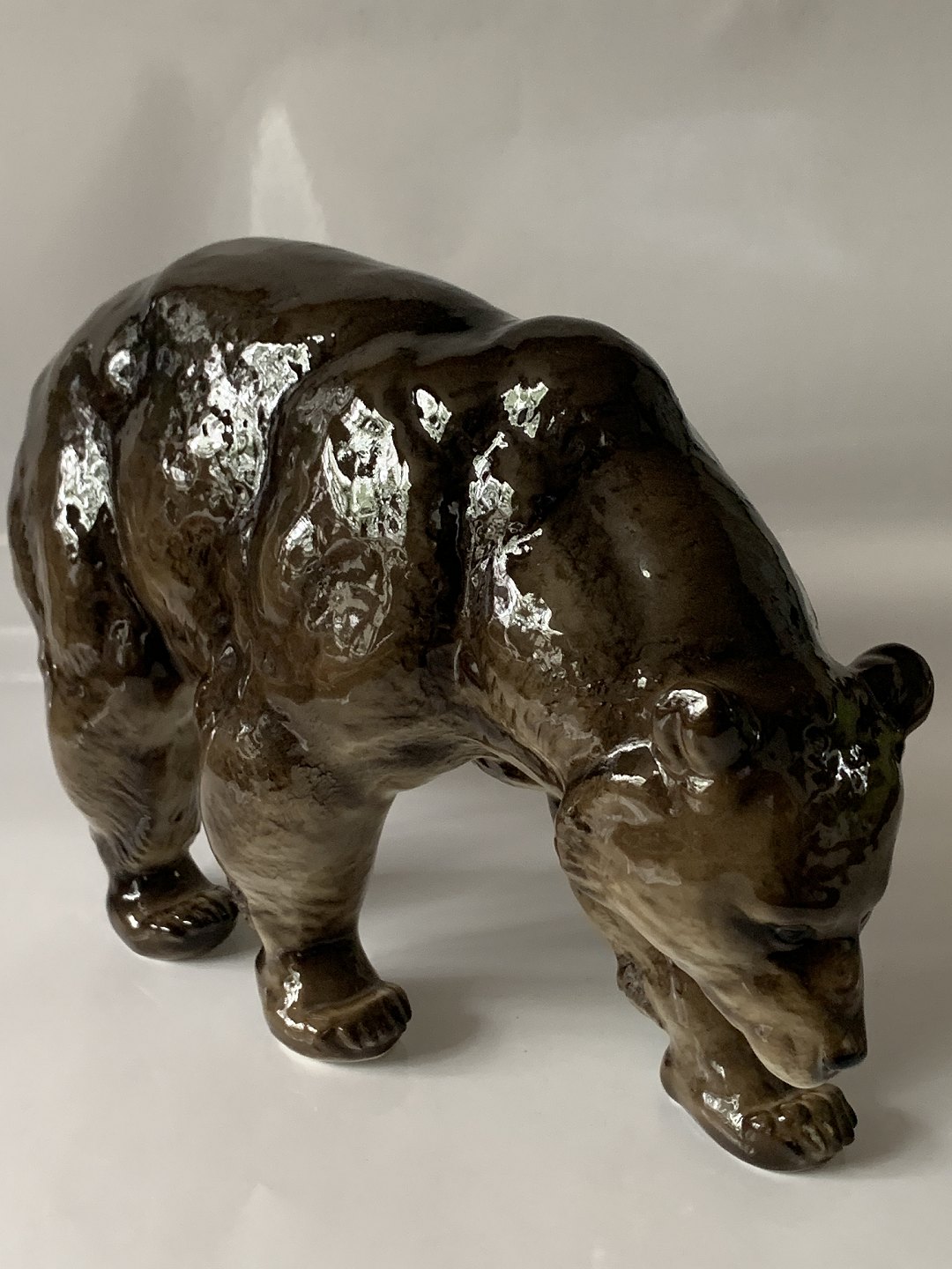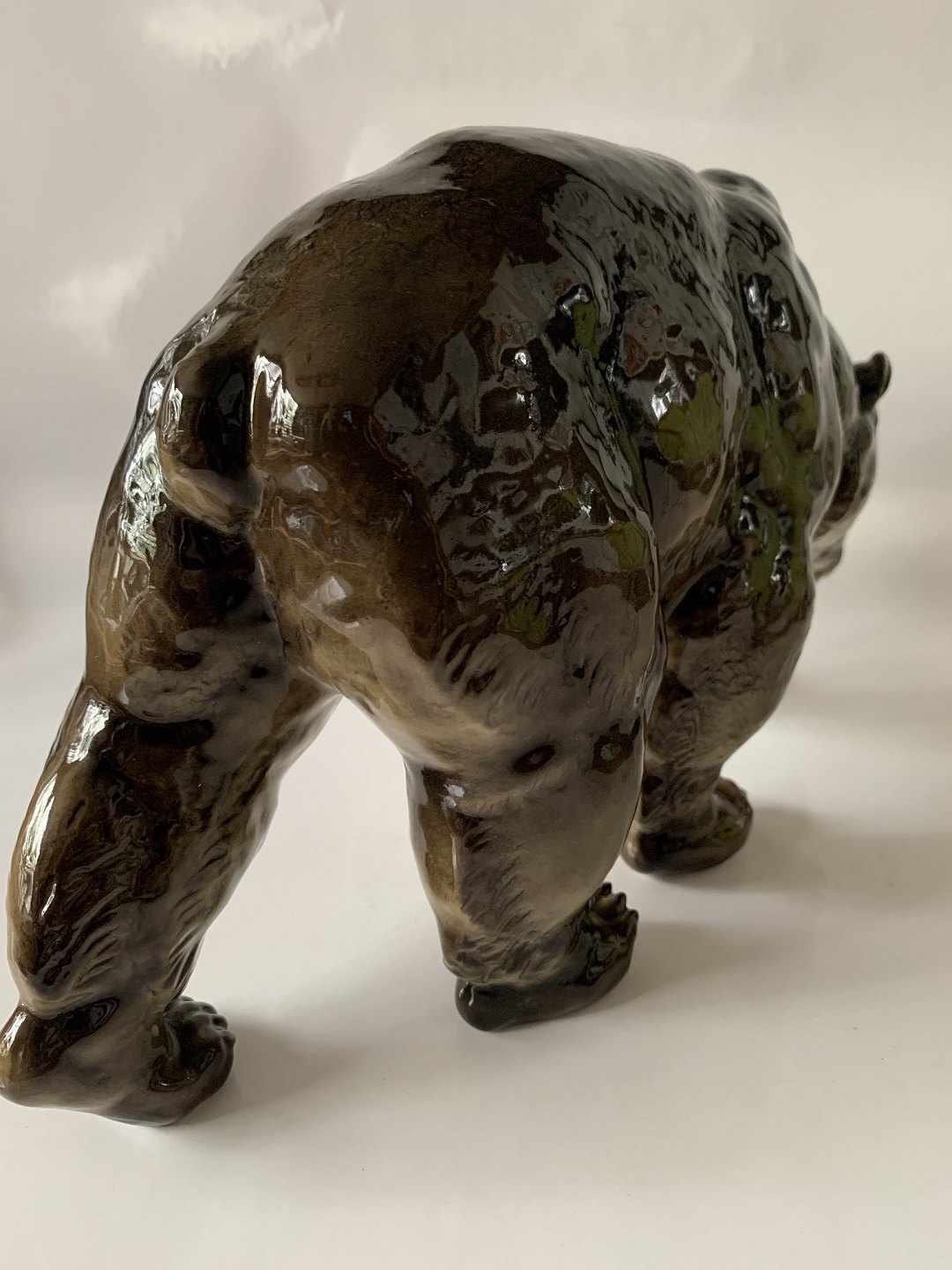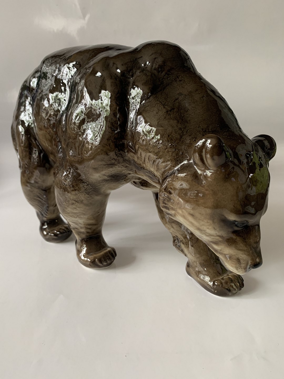 Flot og stor porcelænsfigur, med form som en bjørn. Bjørnen spadserer roligt, og figuren udtrykker et dyr i fredfyldt gang. De mange fine detaljer i udførelsen, gør denne figur til noget særligt. Brug den på reolen eller skrivebordet, hvor den kan live dit hjem op.