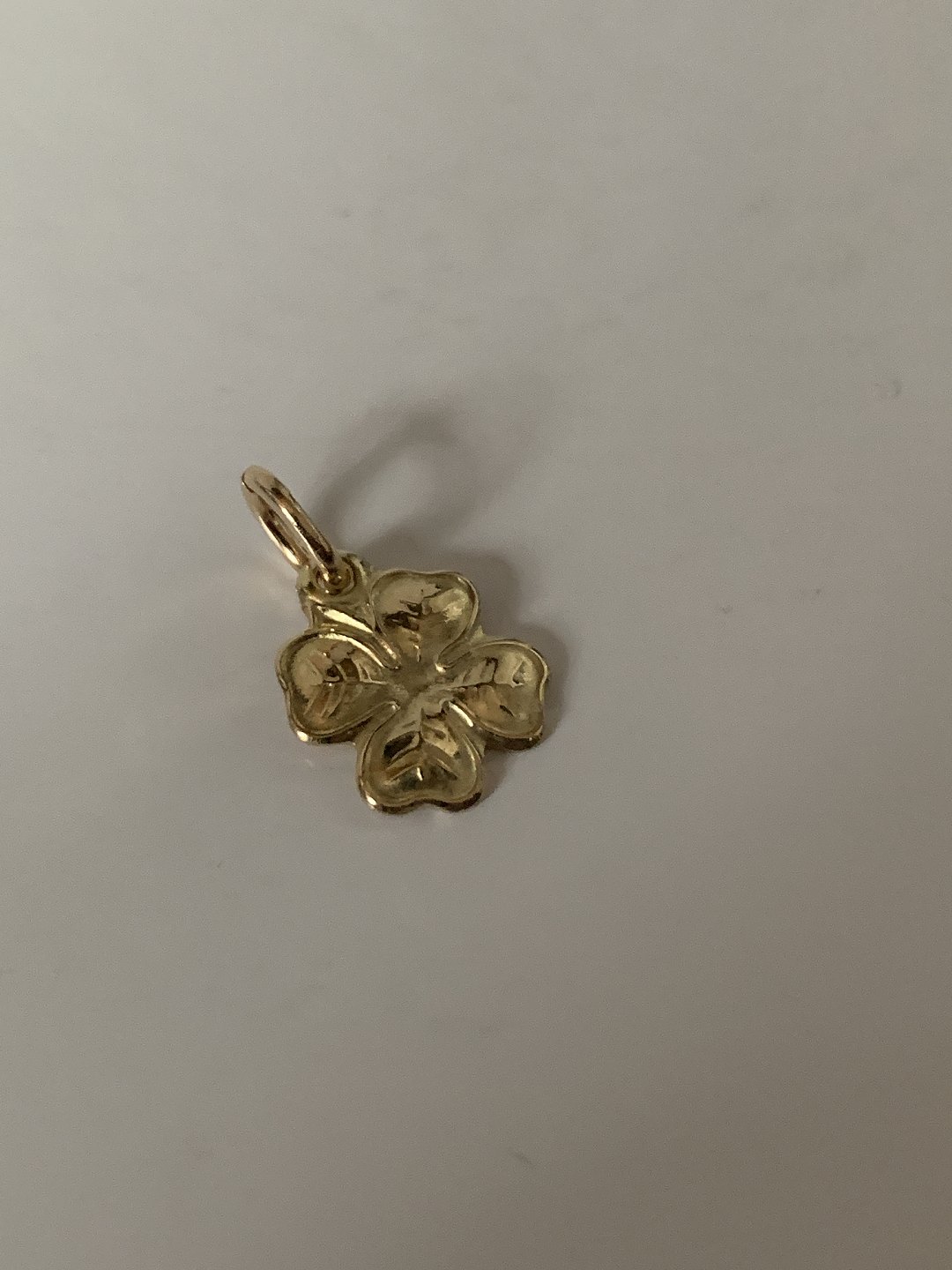 Vedhæng til armbånd eller halskæde, formet som firkløver i 14 karat guld. Det ikoniske symbol, firkløveren, er forbundet med held. Så måske bliver du badet i held, når du bærer denne firløver. Under alle omstændigheder, er det et fint lille vedhæng der vil komme til sin fulde ret enten i en tynd guldkæde om halsen, eller som charm i dit guldarmbånd.