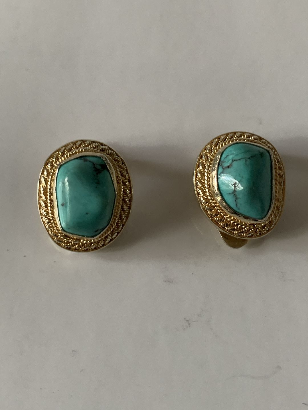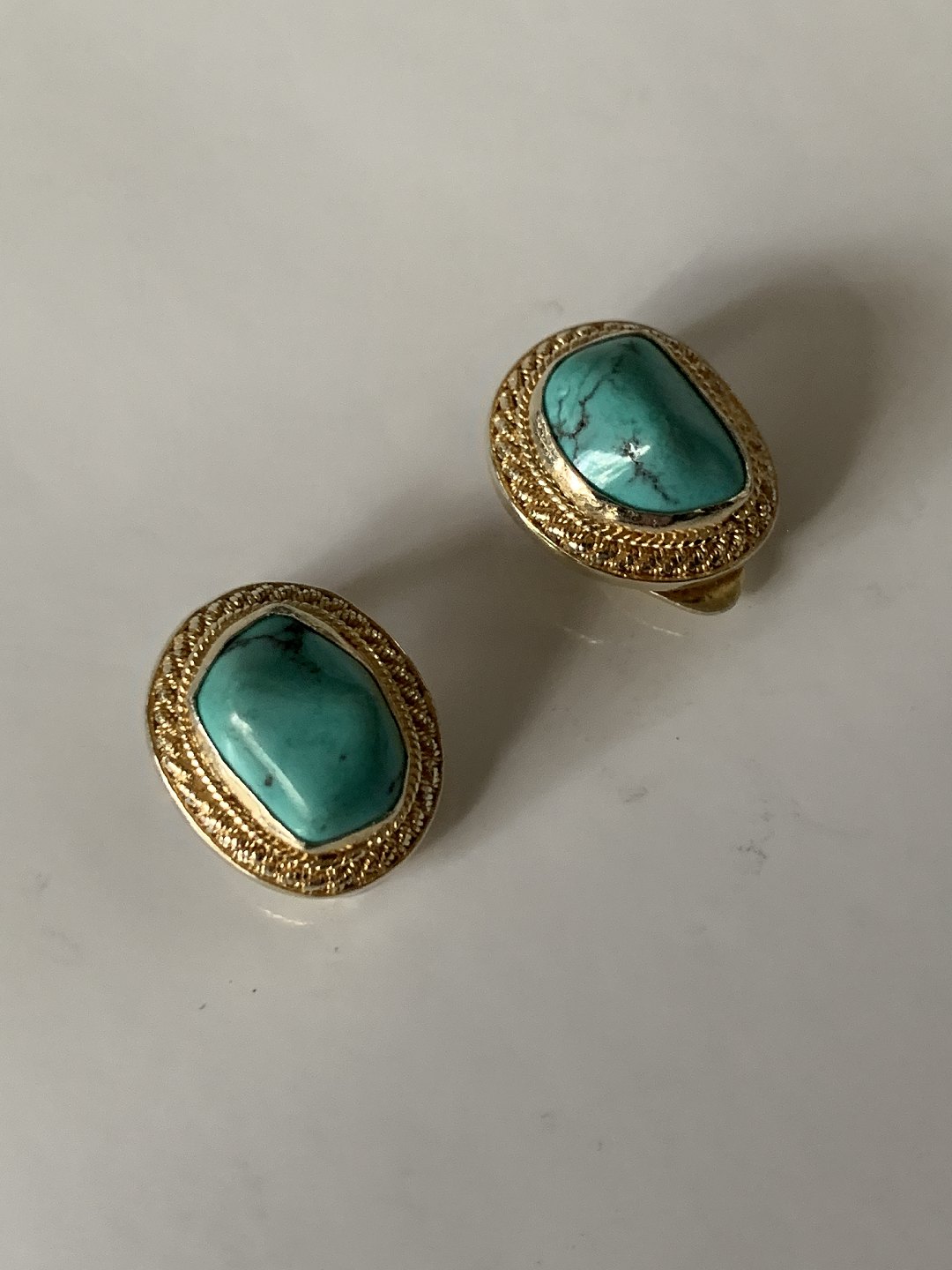 Earrings with clips, gold-plated silver with inlaid Tukis.