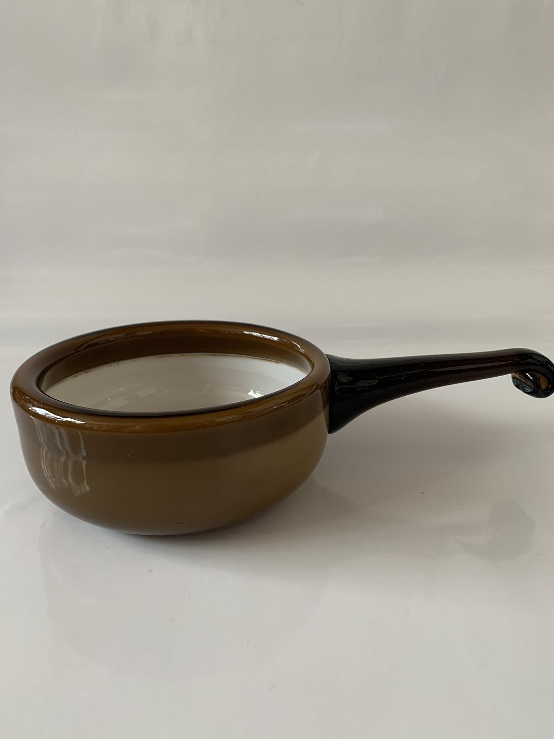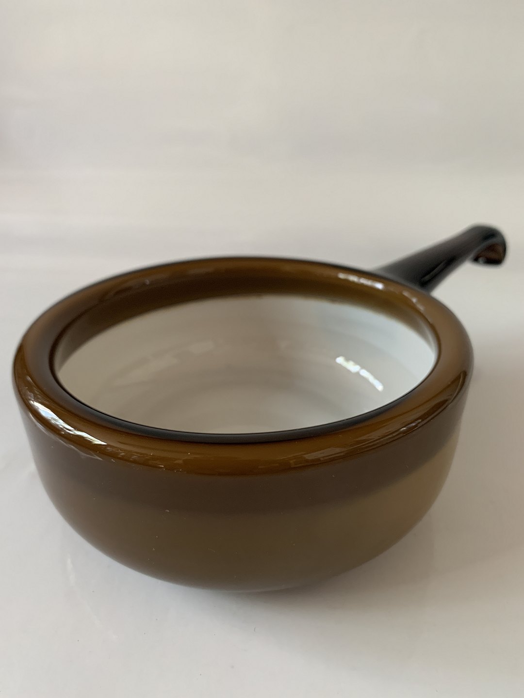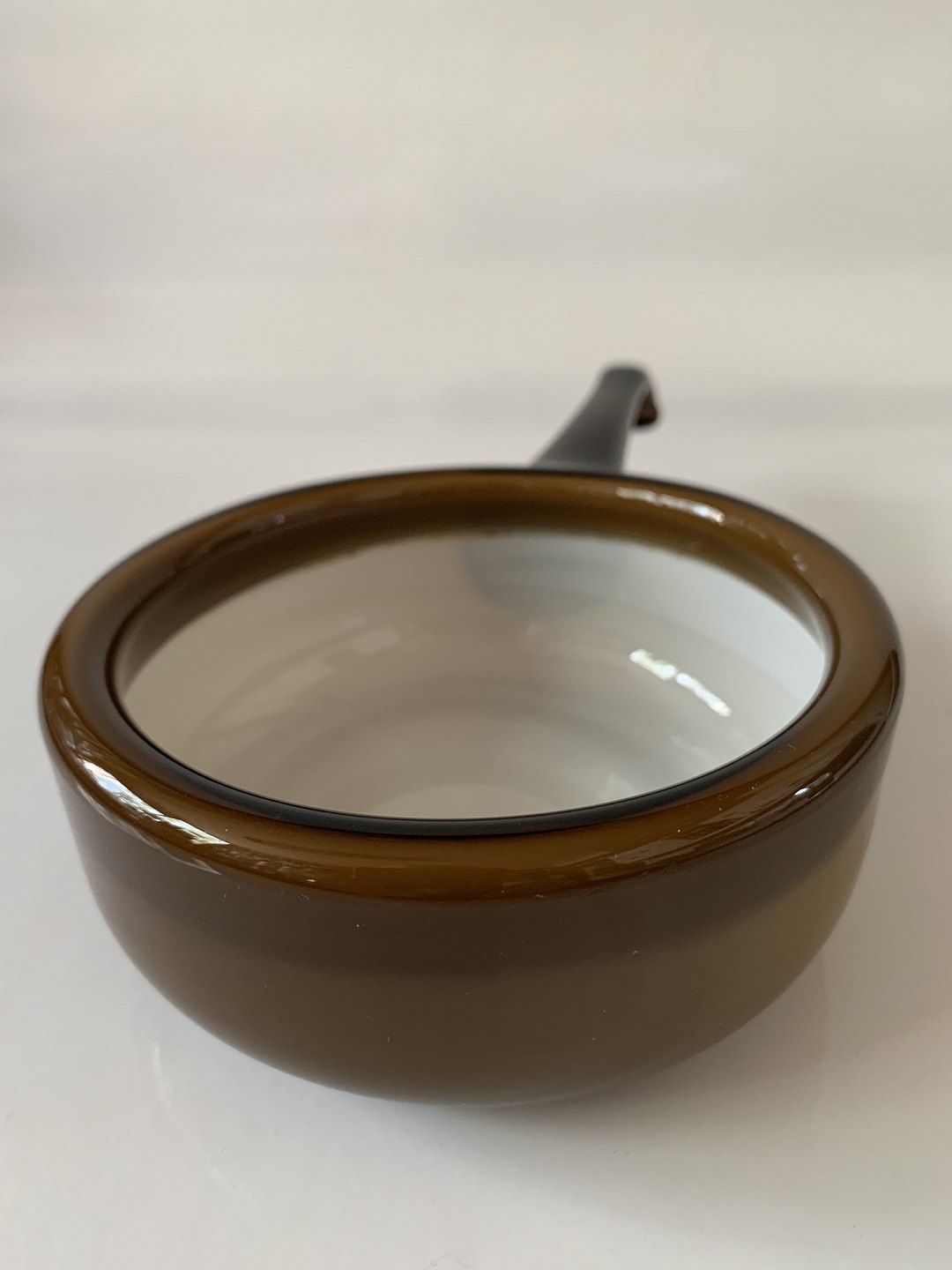 Bowl with handle Palet Holmegaard Glassworks 1970-71 Design, Michael Bang Height 5.5 cm. Length 21.5 cm. Nice and well maintained condition See also our selection of glass here: https://www.antikhuset.net/katindex.asp?kukat=357