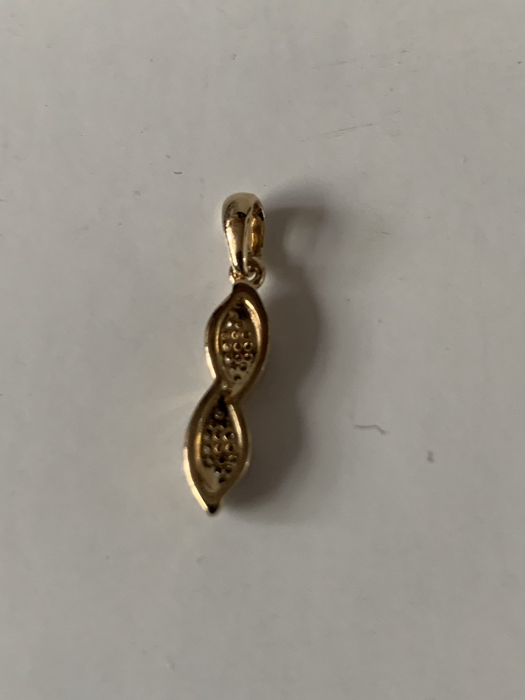 This beautiful Infinity Sign sign-symbol pendant is made with attention to the smallest details. The pendant is forged from 14k gold, in a beautiful timeless shape. The inlaid diamonds give the pendant a nice shine that radiates good style and class. Can it be advantageously combined with a gold chain.